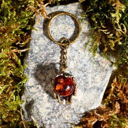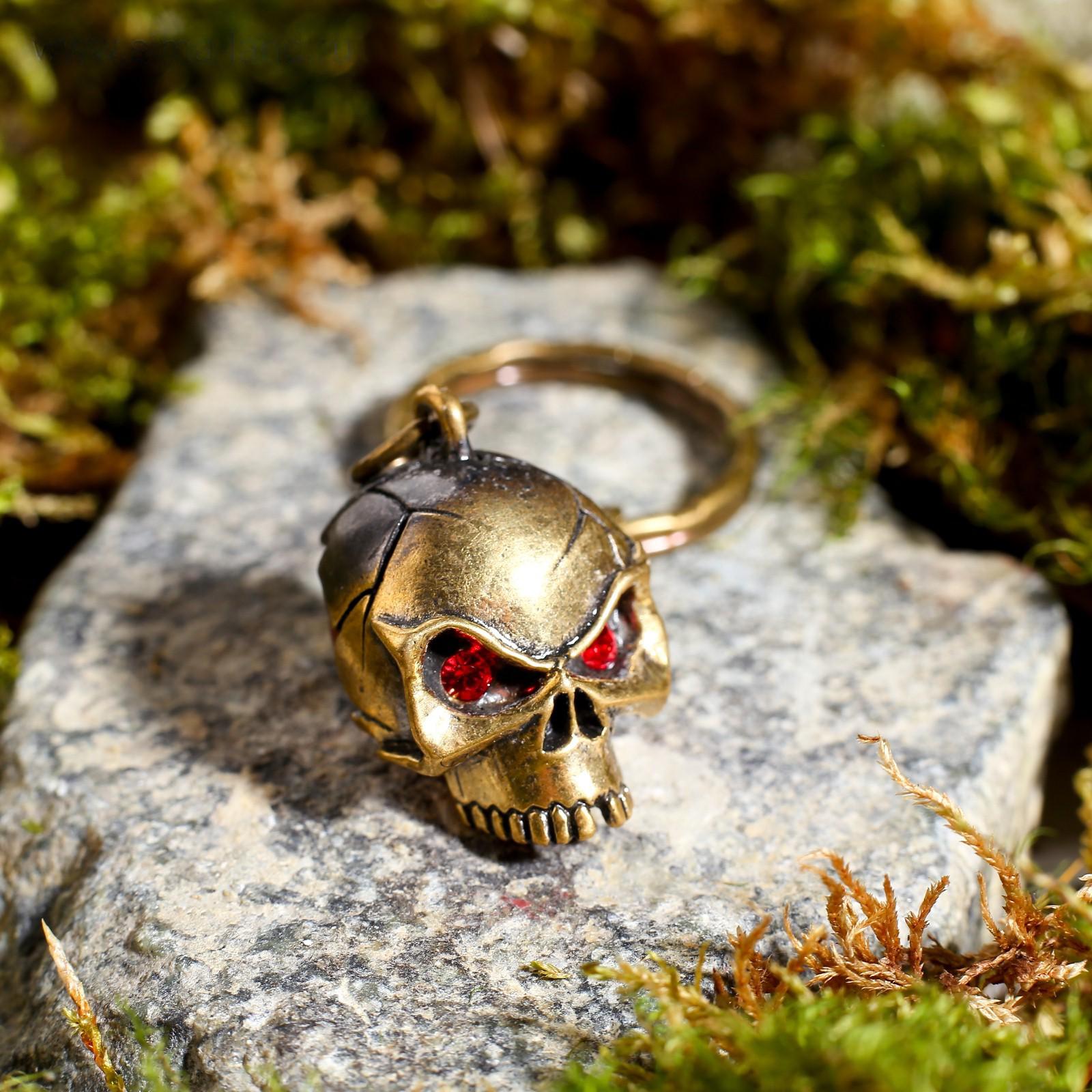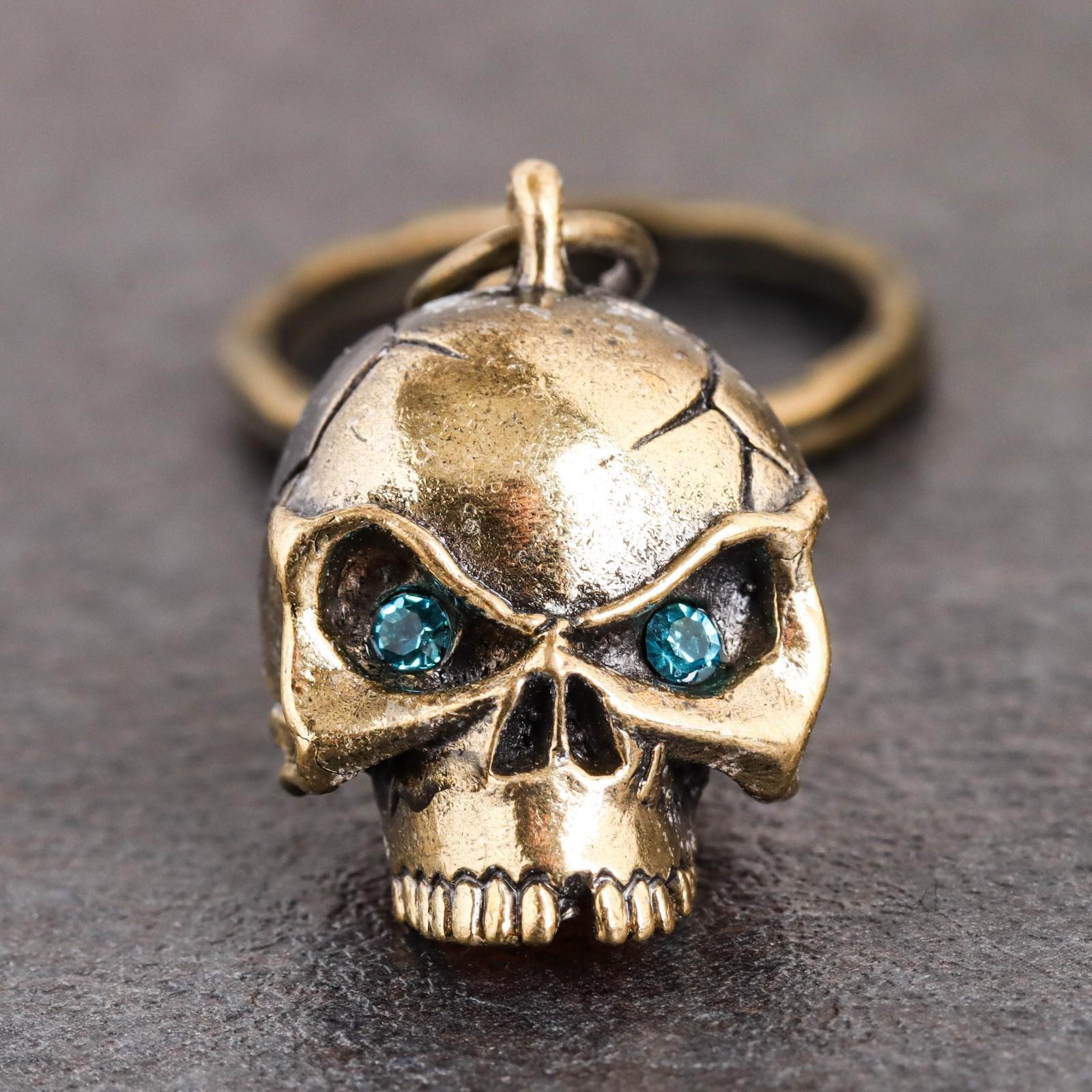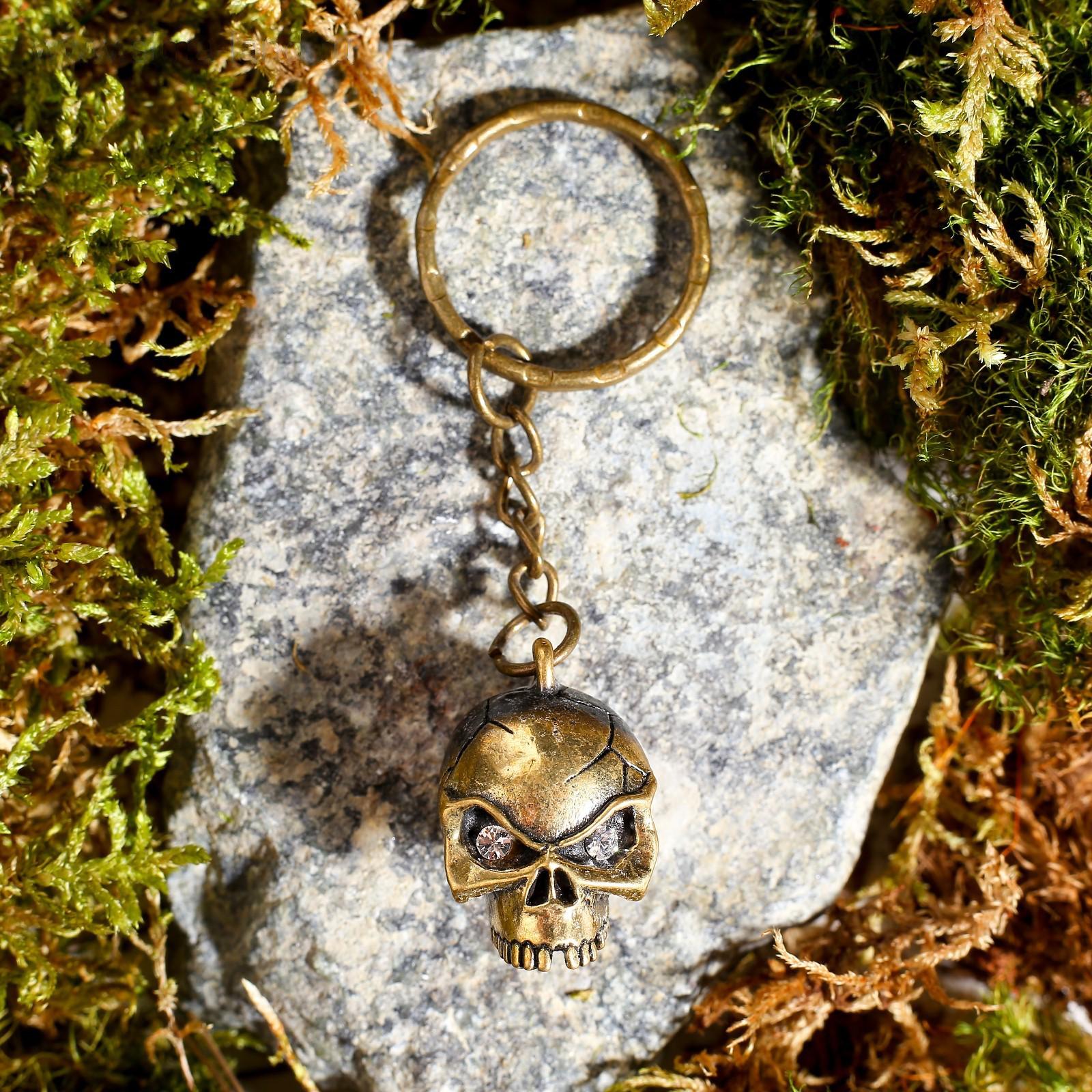Брелок из латуни и янтаря "Череп" 1.8х2.5 см