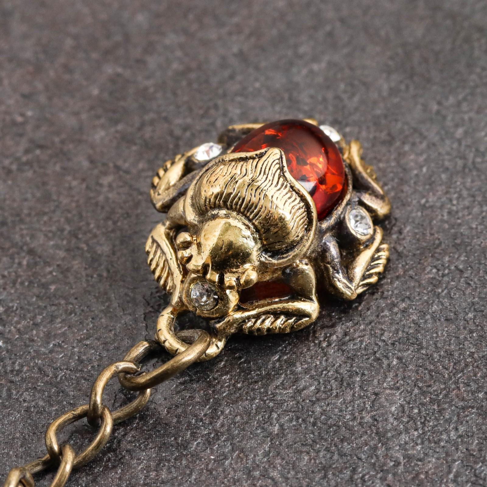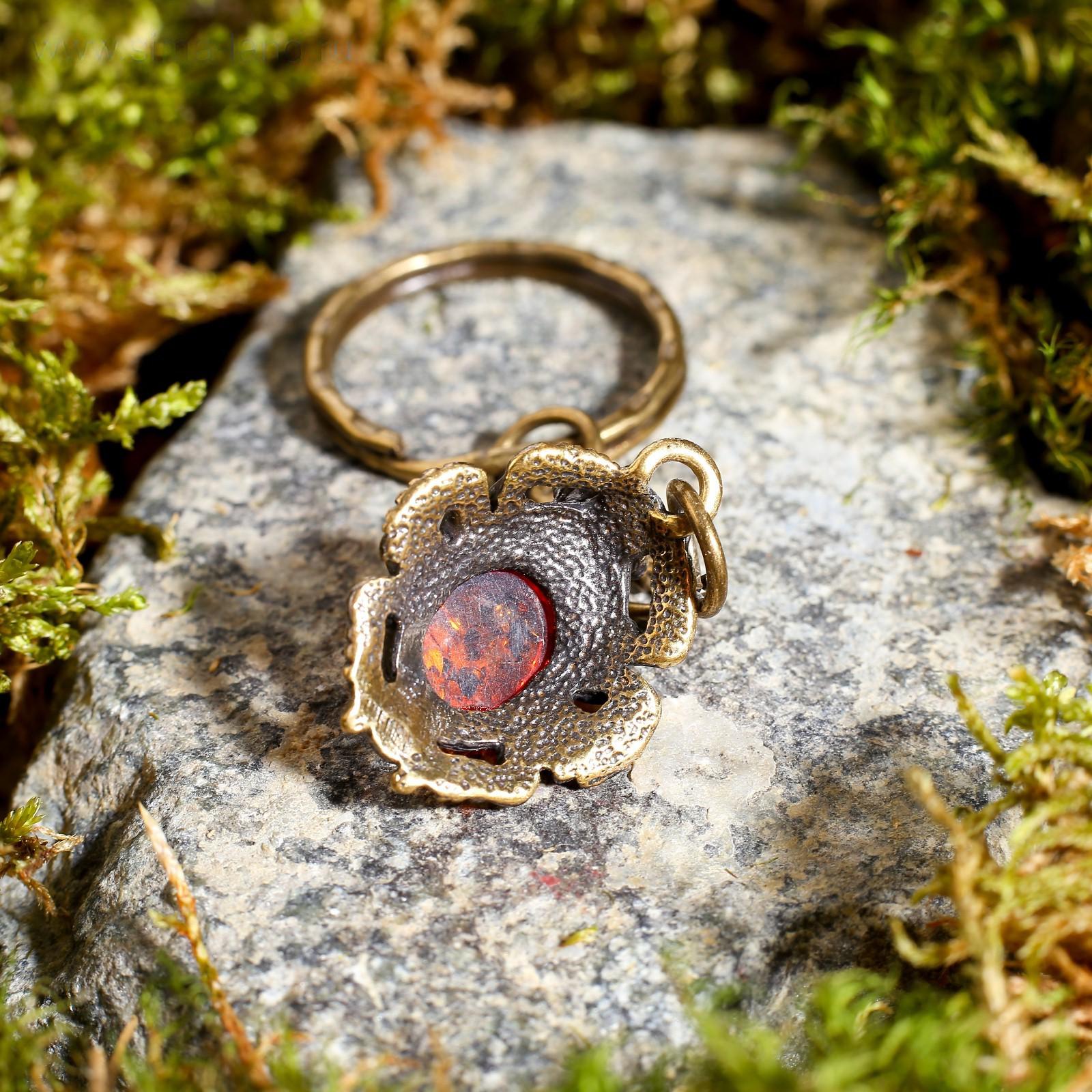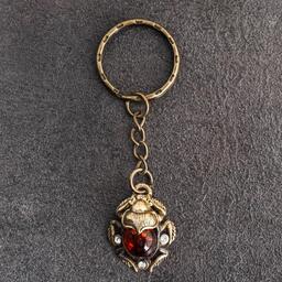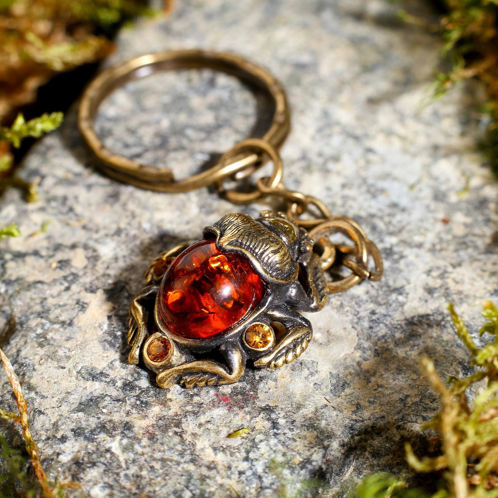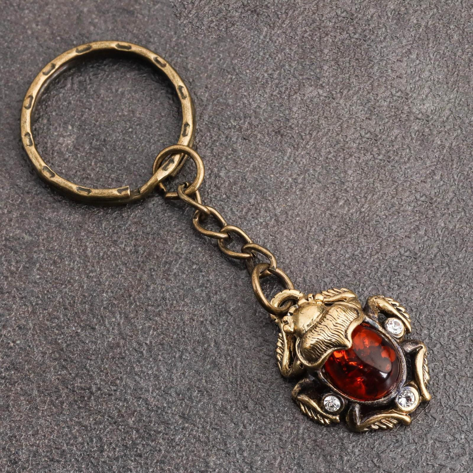 Брелок из латуни и янтаря "Жук скарабей со стразами" 2х2.7 см