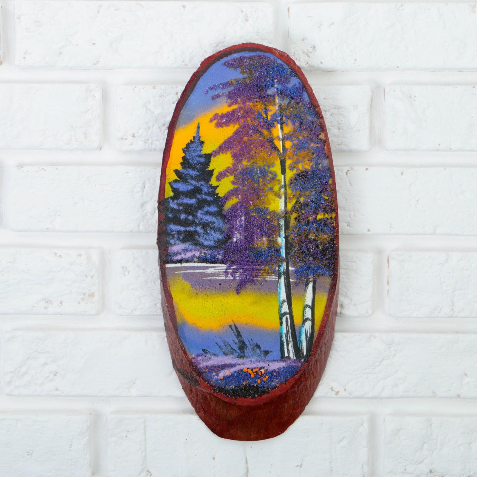 Панно из каменной крошки на спиле дерева создано вручную. Станет элегантным подарком и украшением стены.