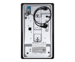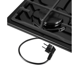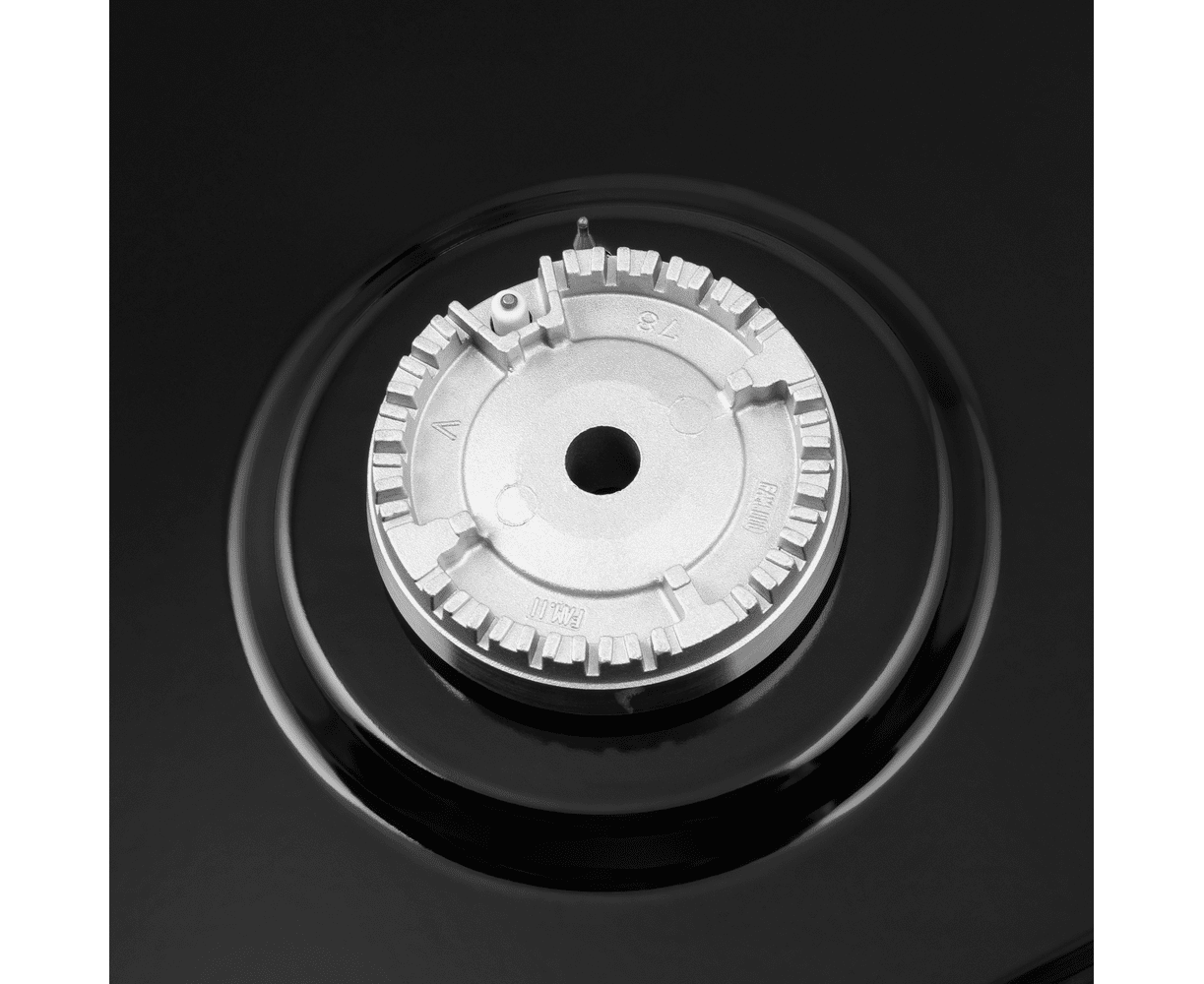 Панель выполнена из металла, покрытого термостойкой прочной эмалью черного цвета. В данной модели установлены высококачественные итальянские горелки «Sabaf» (2 конфорки). Две конфорки разного диаметра с мощностью 1700 Вт и 2600 Вт. Долговечная чугунная решетка защищает панель от повреждений и обеспечивает устойчивость посуды.