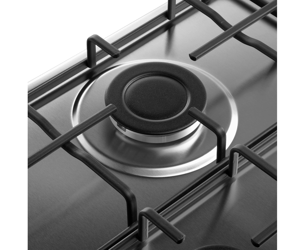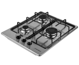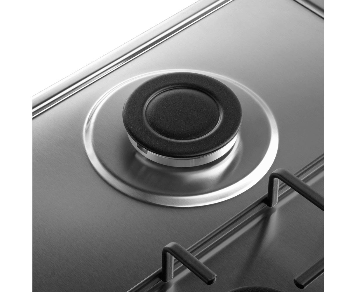 Панель выполнена из высококачественной нержавеющей стали. Укомплектована итальянскими горелками «Sabaf». Три стандартные конфорки разного диаметра с мощностью 1000 Вт, 1700 Вт и 2600 Вт.