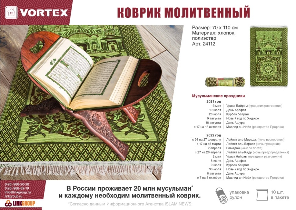 Коврик Молитвенный 70*110см, VORTEX 24112