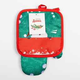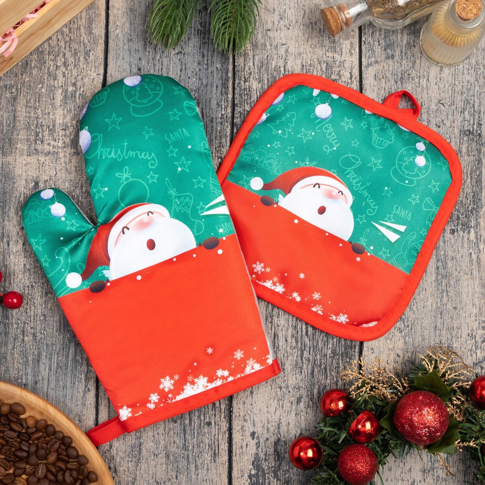 Кухонный набор 2 прихватки Доляна «Дед мороз» прихватка 17х17 см, варежка 26х16 см, 100% п/э