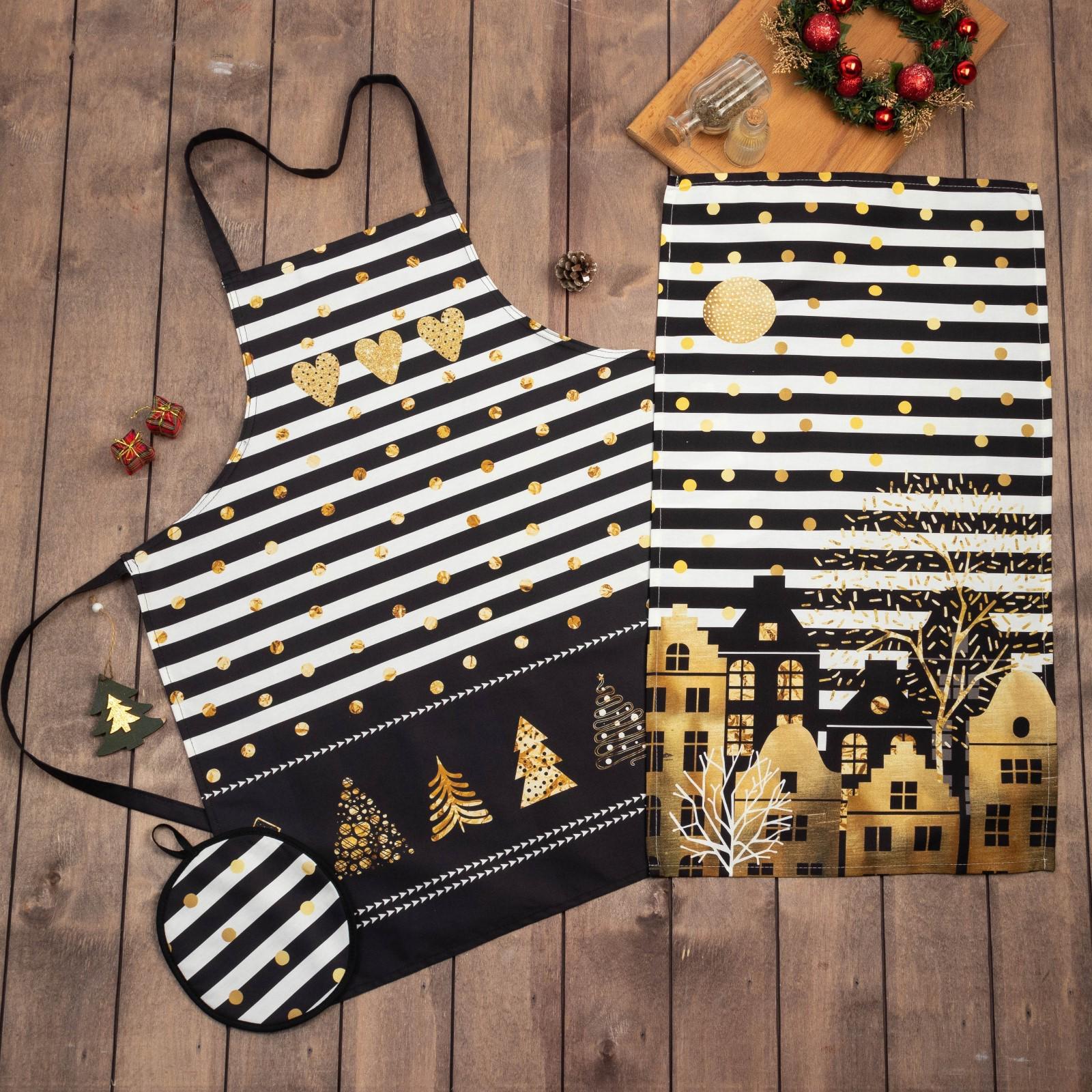 Новогодний подарочный набор Этель "Золотой город", фартук, полотенце, прихватка