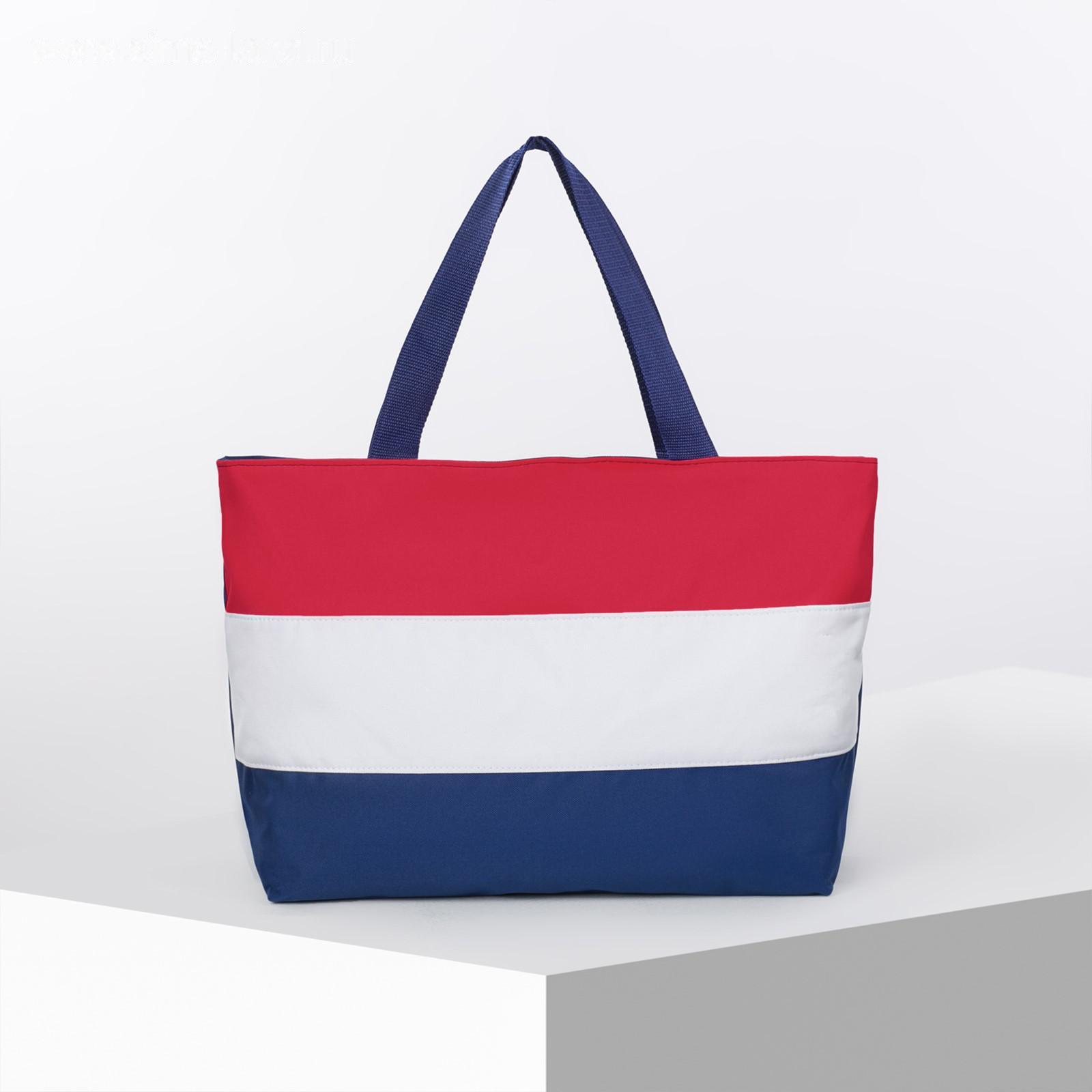 Сумка пляжная на молнии, без подклада, цвет синий/белый/красный