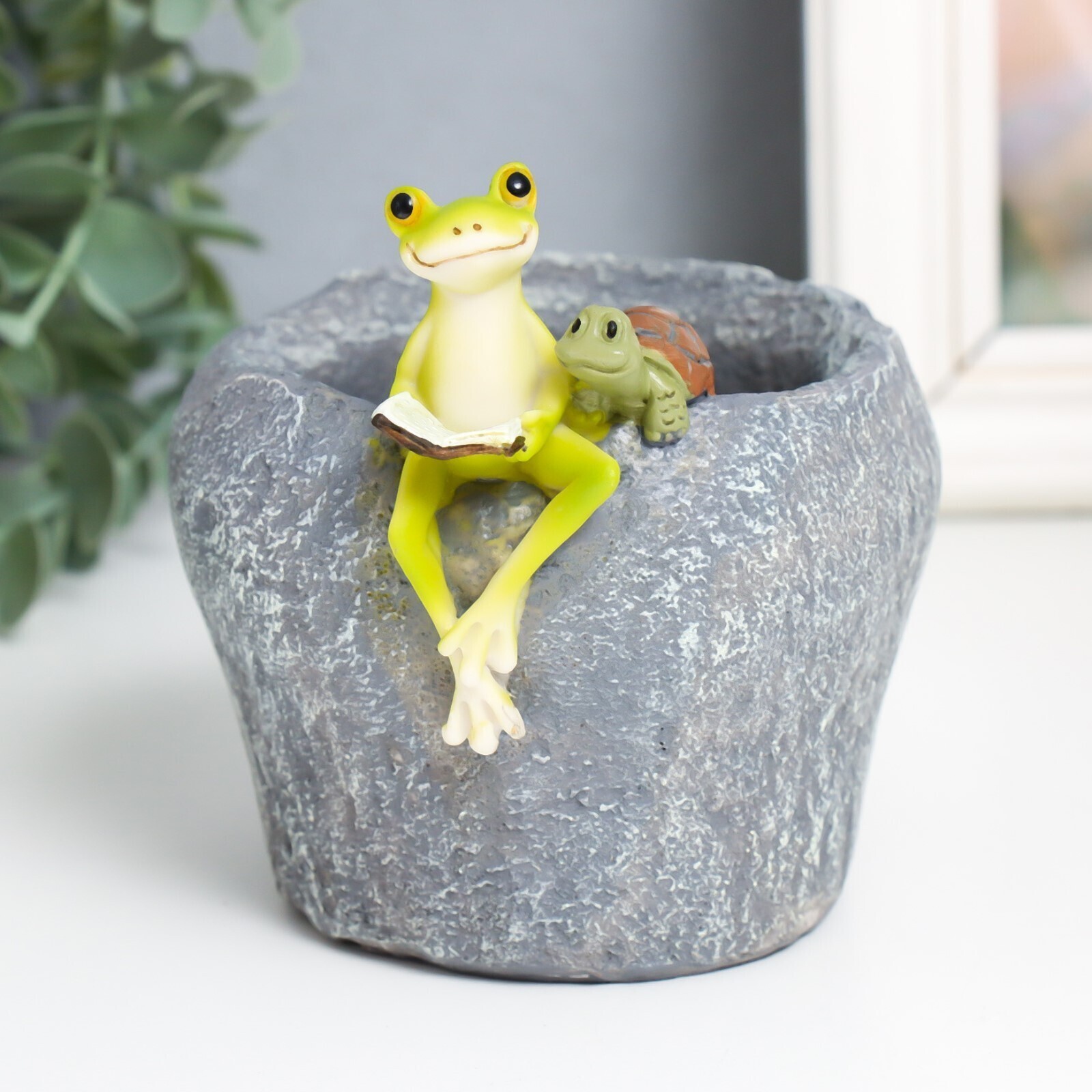 Сувенир полистоун подставка "Лягушонок с черепашкой - чтение" 10,6х10х10 см