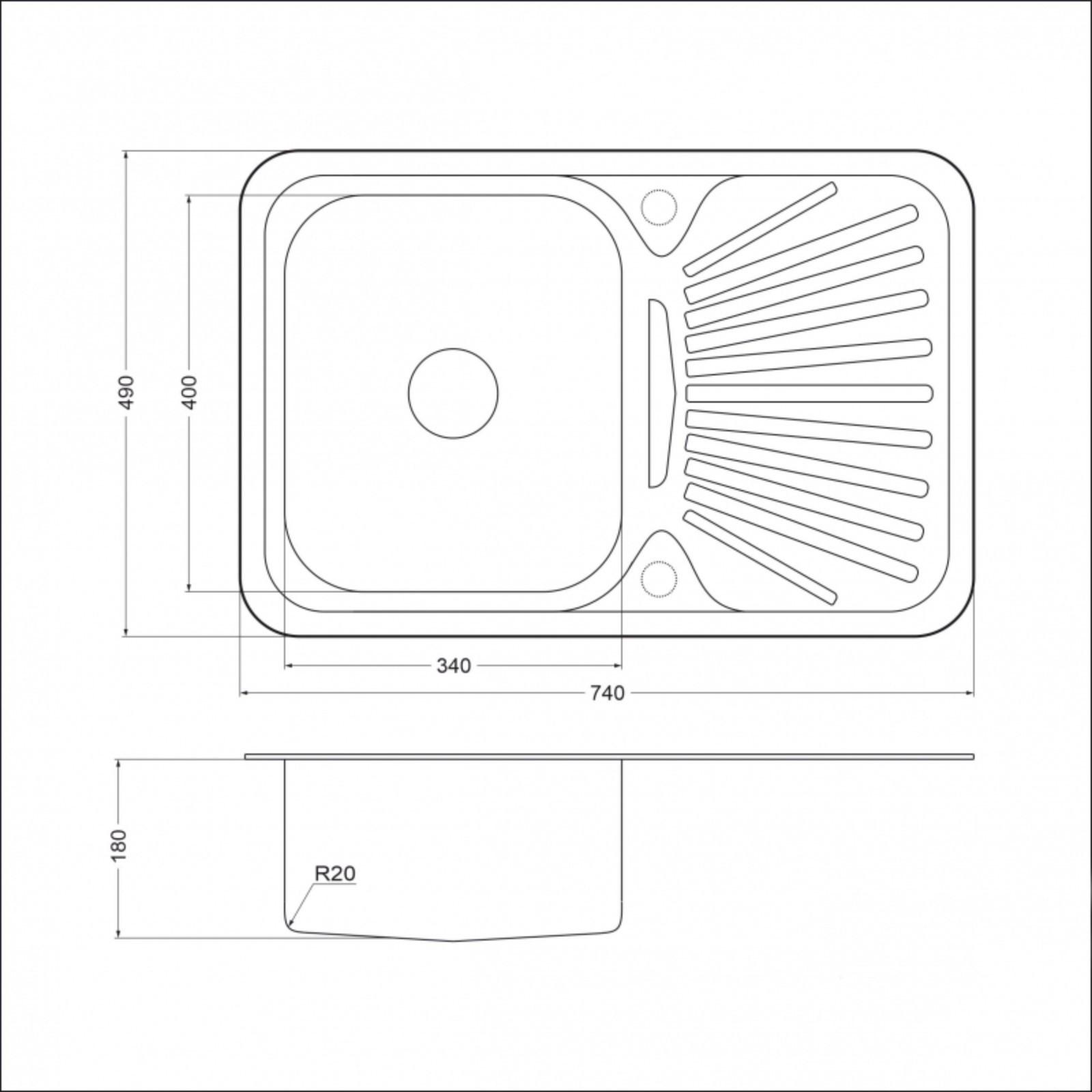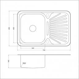 Мойка кухонная EMAR 7449, врезная, 490 х 740 х 180 мм, левая, овальная, хром