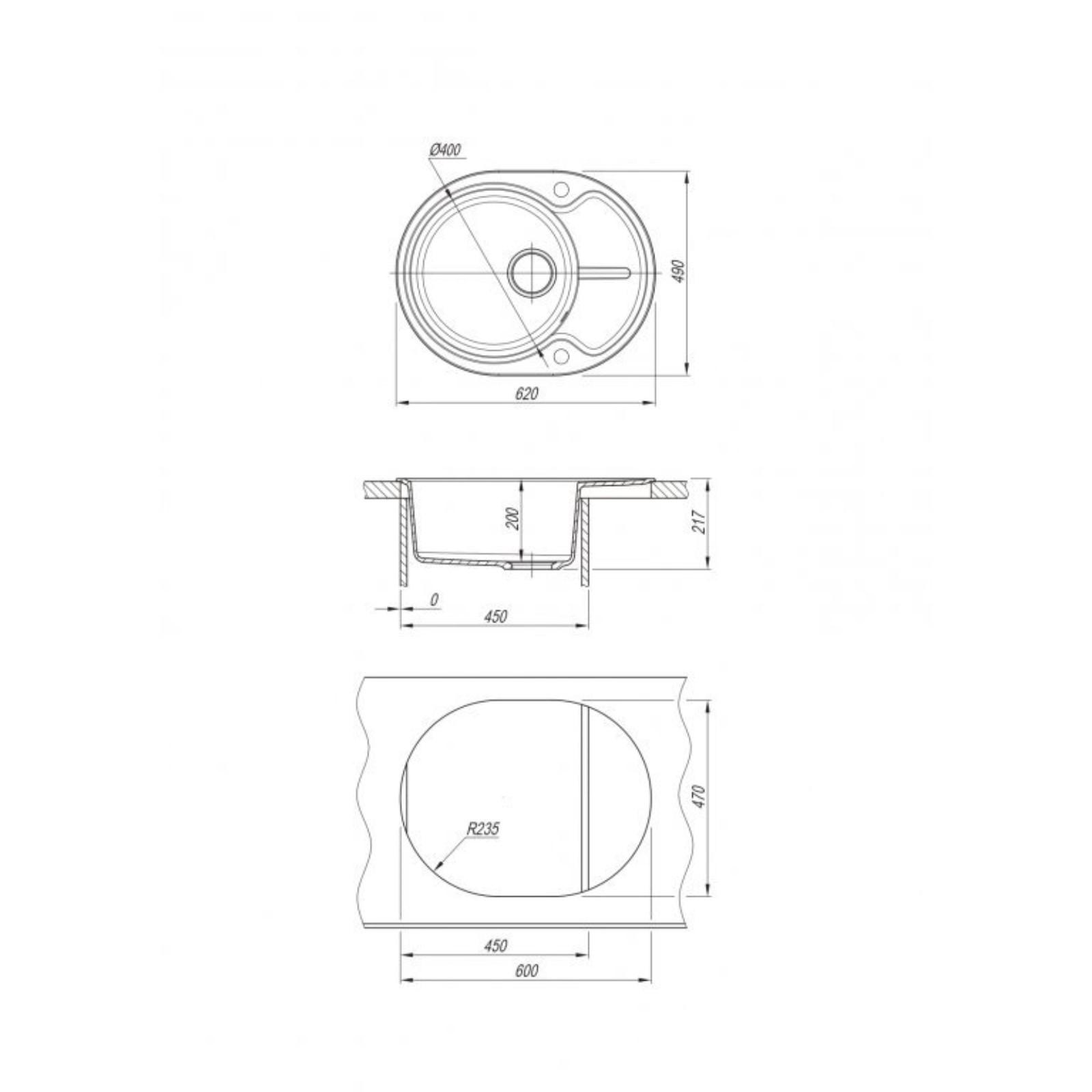 Мойка кухонная из камня Dr.Gans «БЕРТА-620» 620х490 мм, h=217 мм, цвет белый