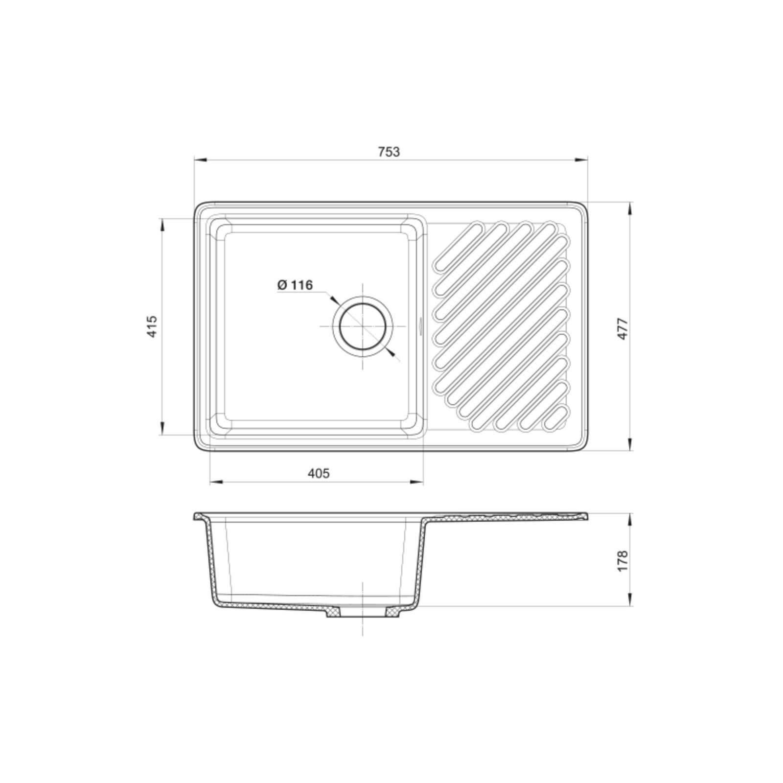 Мойка кухонная из камня GranFest Quarz GF-ZL-52, 753х477 мм, цвет бежевый