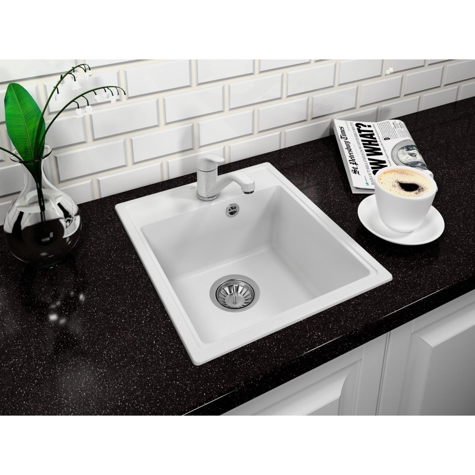 Мойка кухонная из камня Dr.Gans Smart «ОЛИВИЯ-420» 420х480 мм, h=200 мм, цвет белый