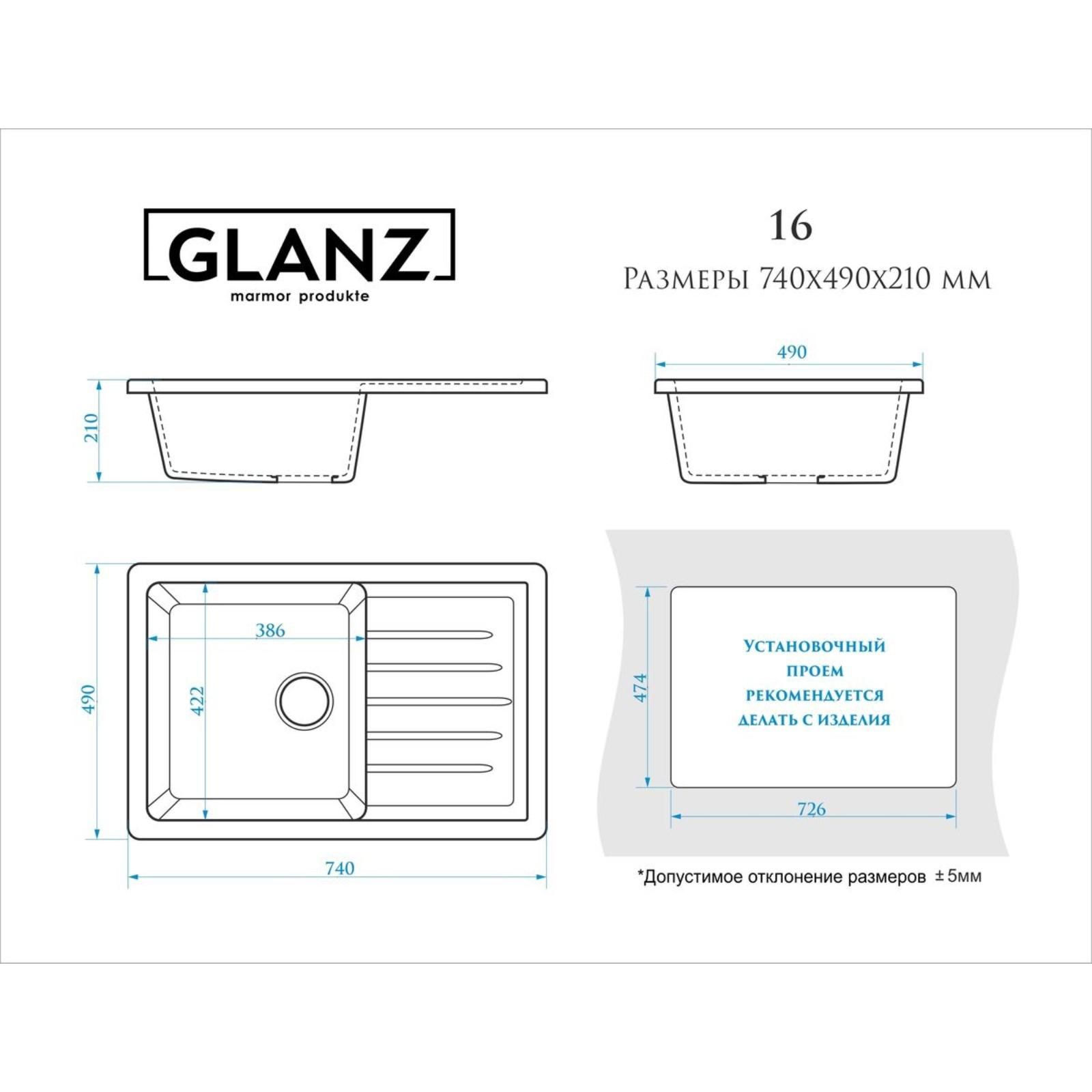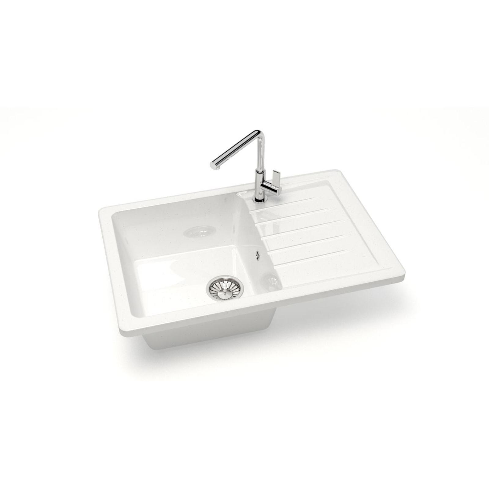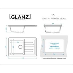 Мойка кухонная из камня Glanz Энди L16G31, 740x490x210 мм, глянцевая, врезная, белая