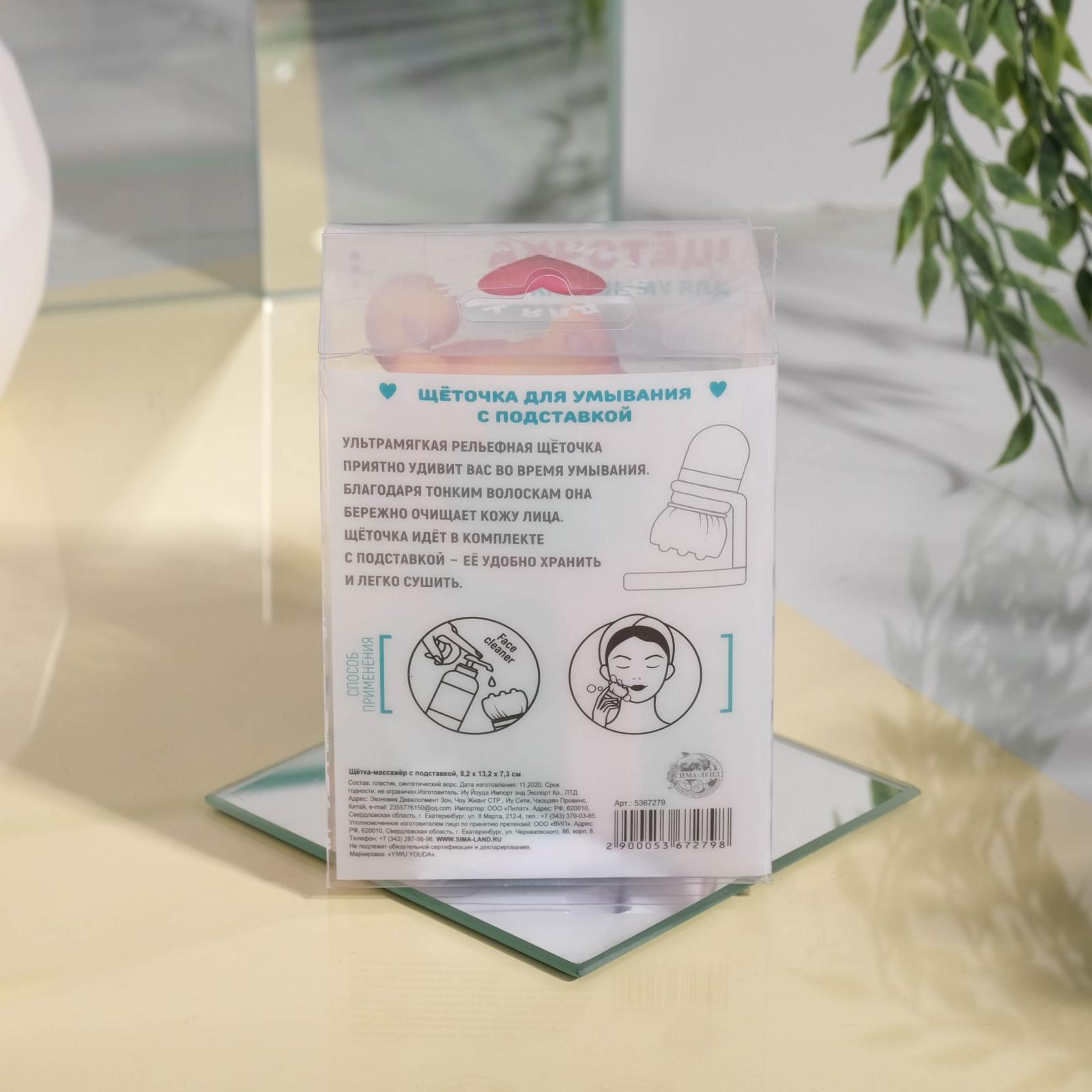 Ультрамягкая рельефная щёточка приятно удивит вас во время умывания. Благодаря тонким волоскам она бережно очищает кожу лица. Щёточка идёт в комплекте с подставкой – её удобно хранить и легко сушить.