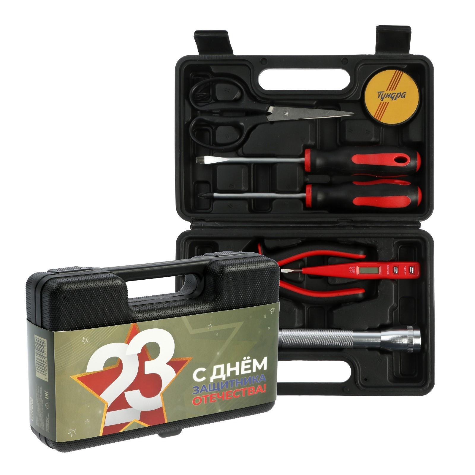 Набор инструментов в подарочном кейсе к 23 февраля ТУНДРА, 8 предметов