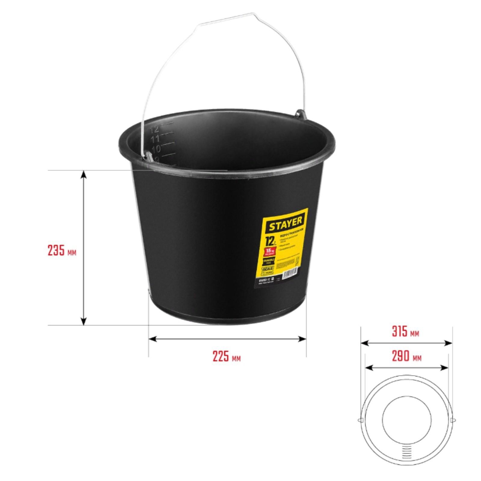 Ведро строительное STAYER 06083-12_z01, пластик, высокопрочное, 12 л