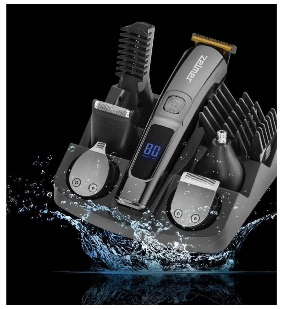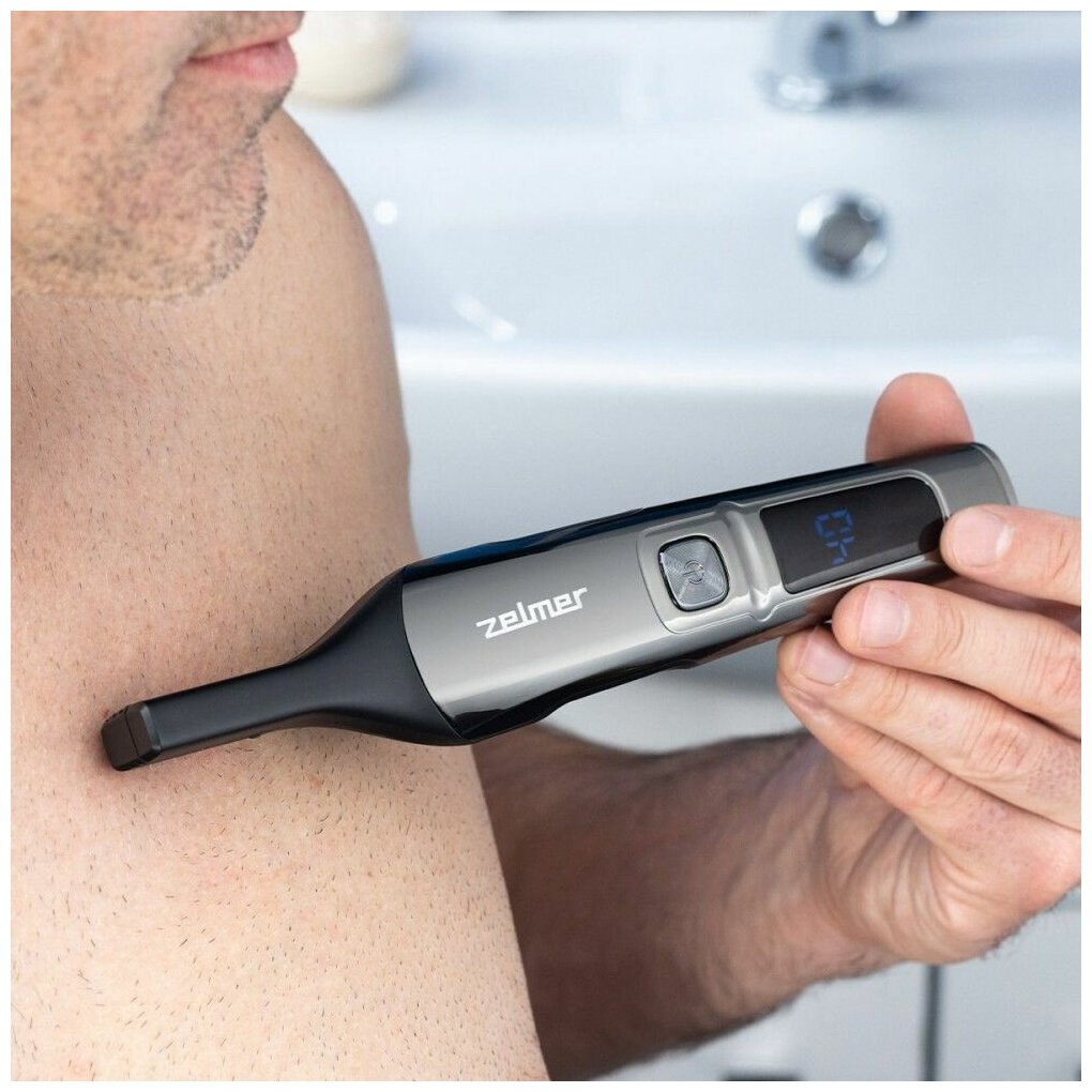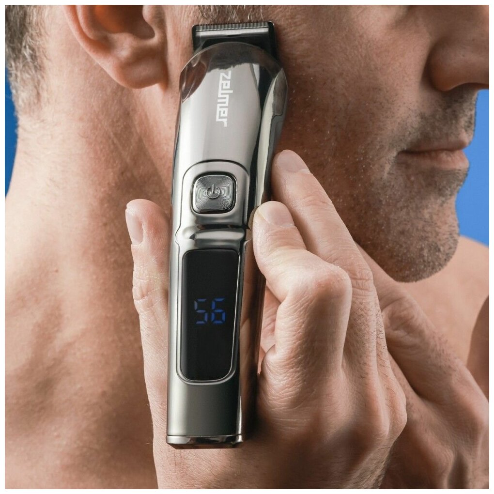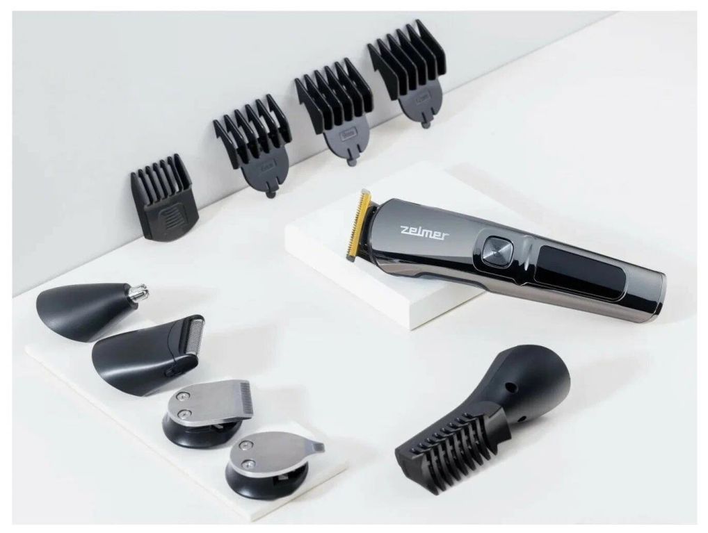 Триммер для волос ZGK6500 ZELMER обладает титановыми лезвиями T-BLADE шириной 38 мм. Для питания используется встроенный Li-ion аккумулятор, которого в среднем хватает на 80 мин работы. При этом время зарядки составляет всего 2 часа. Насадки из комплекта позволяют установить длину 3, 6, 9, 12 есть регулировка длины лезвий от 1 до 4 мм, всё это в сумме позволяет изменять длину стрижки волос от 0.5 до 12 мм и использовать прибор как машинку для стрижки волос. Для насадки грумера можно управлять длиной стрижки волос и установить её на 3, 6 или 9 мм. Приведите в порядок свою бороду или подравняйте длину волос, с триммером ZELMER сделать это не составит труда. Насадка для носа и ушей поможет подравнять волосы в носу или ушах. Мини бритвенная головка для точного стайлинга поможет проработать мельчайшие детали, а с точным триммером будет удобнее сформировать контур. На дисплее отображается оставшийся заряд аккумулятора. Триммер может работать в проводном и беспроводном режимах.
