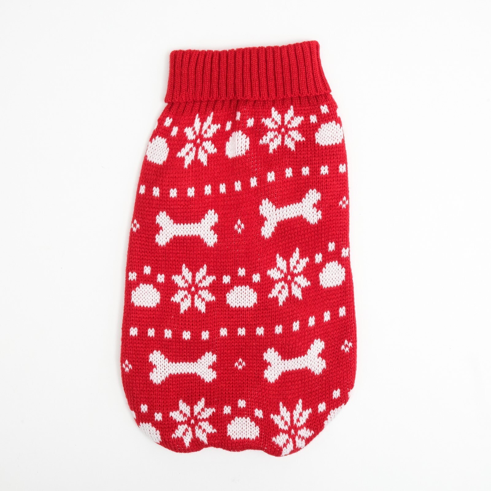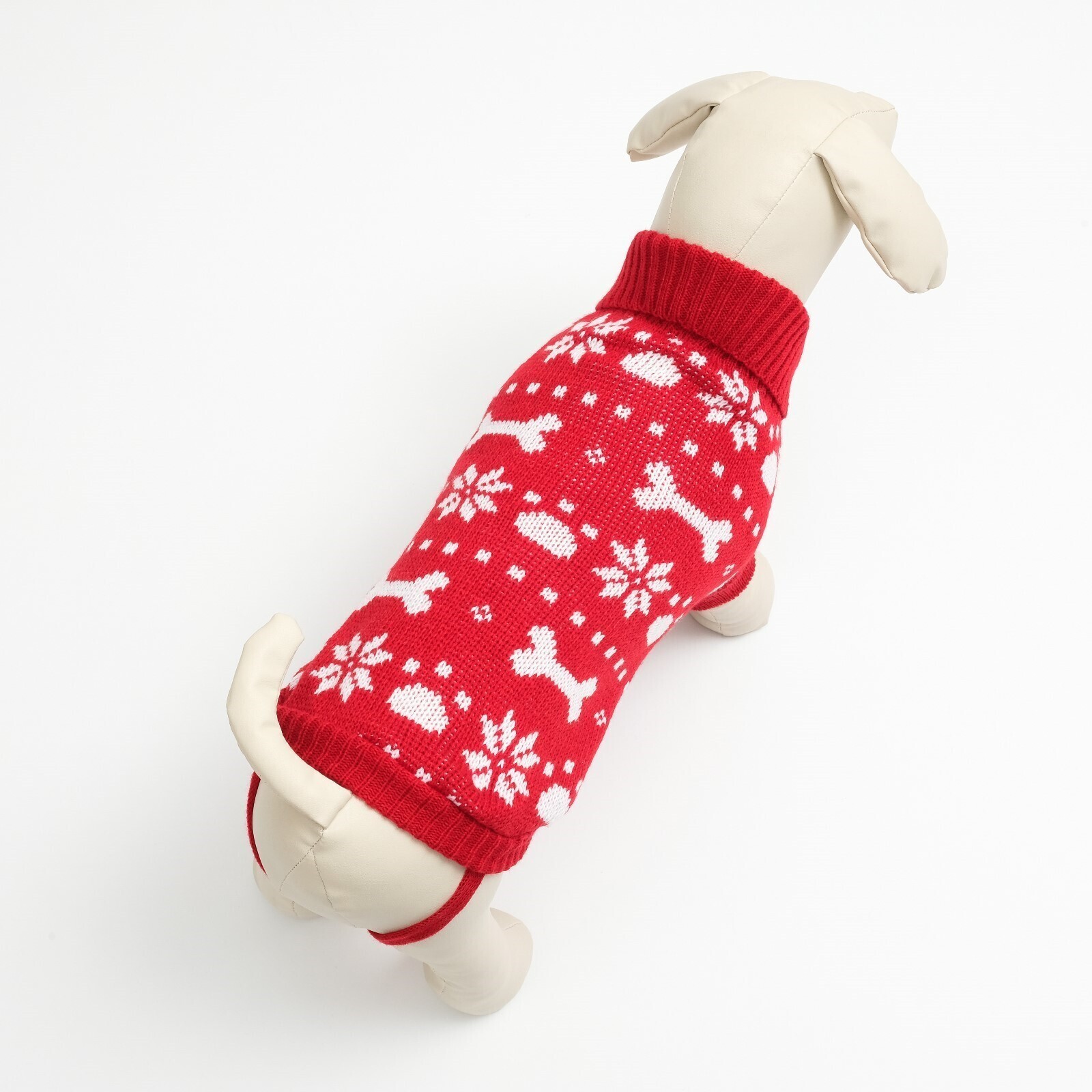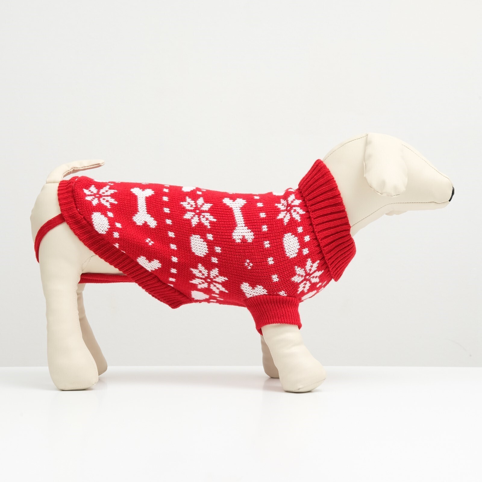 Свитер "Косточки-снежинки", размер 12 (ДС 28-31, ОГ 32-40, ОШ 20-24 см), красный