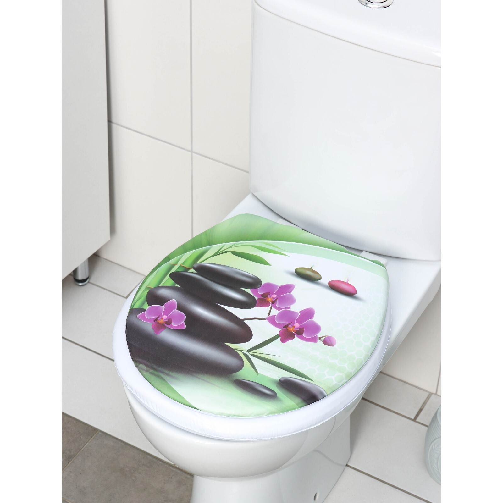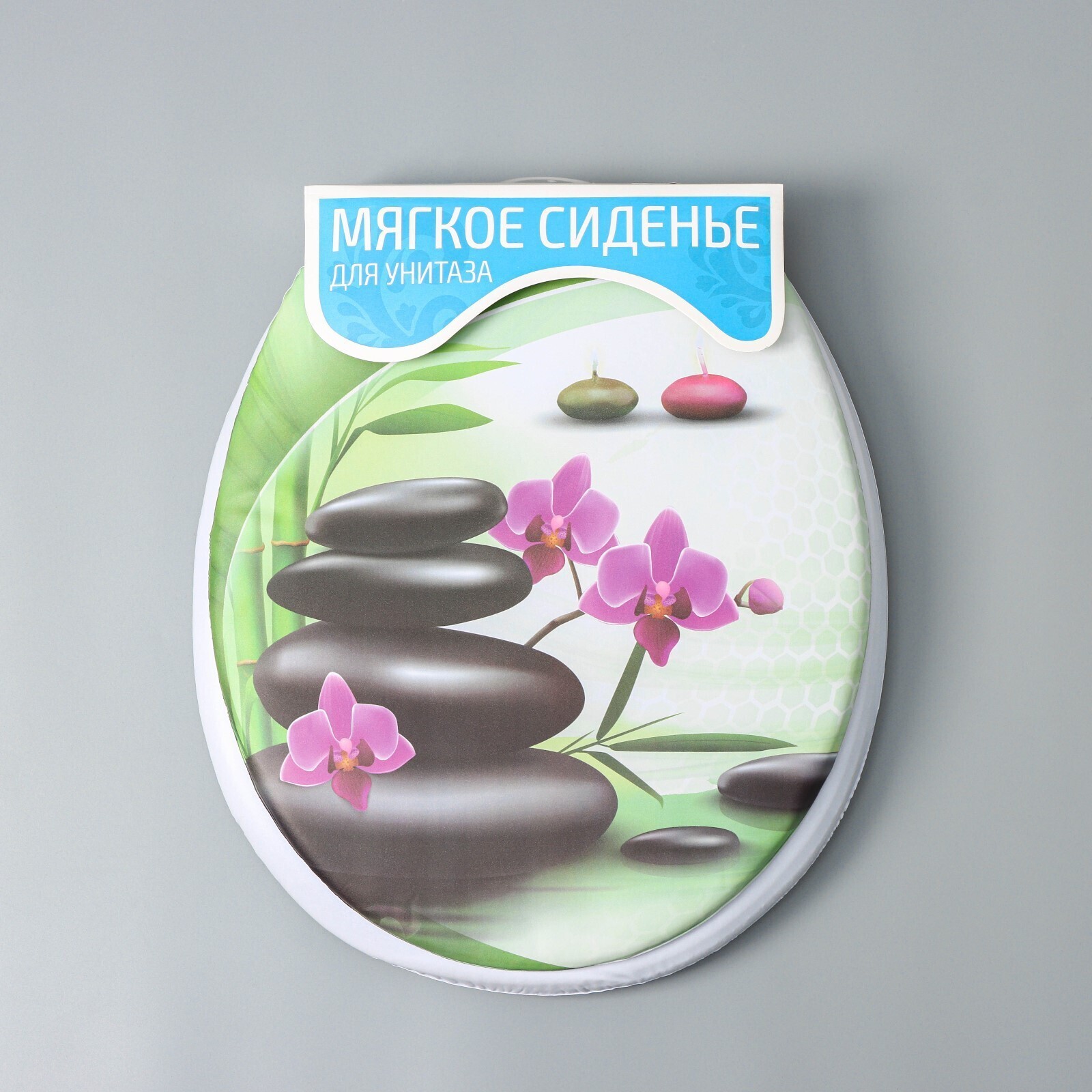 Сиденье для унитаза с крышкой Доляна «Камни дзен», 40×37 см, мягкое