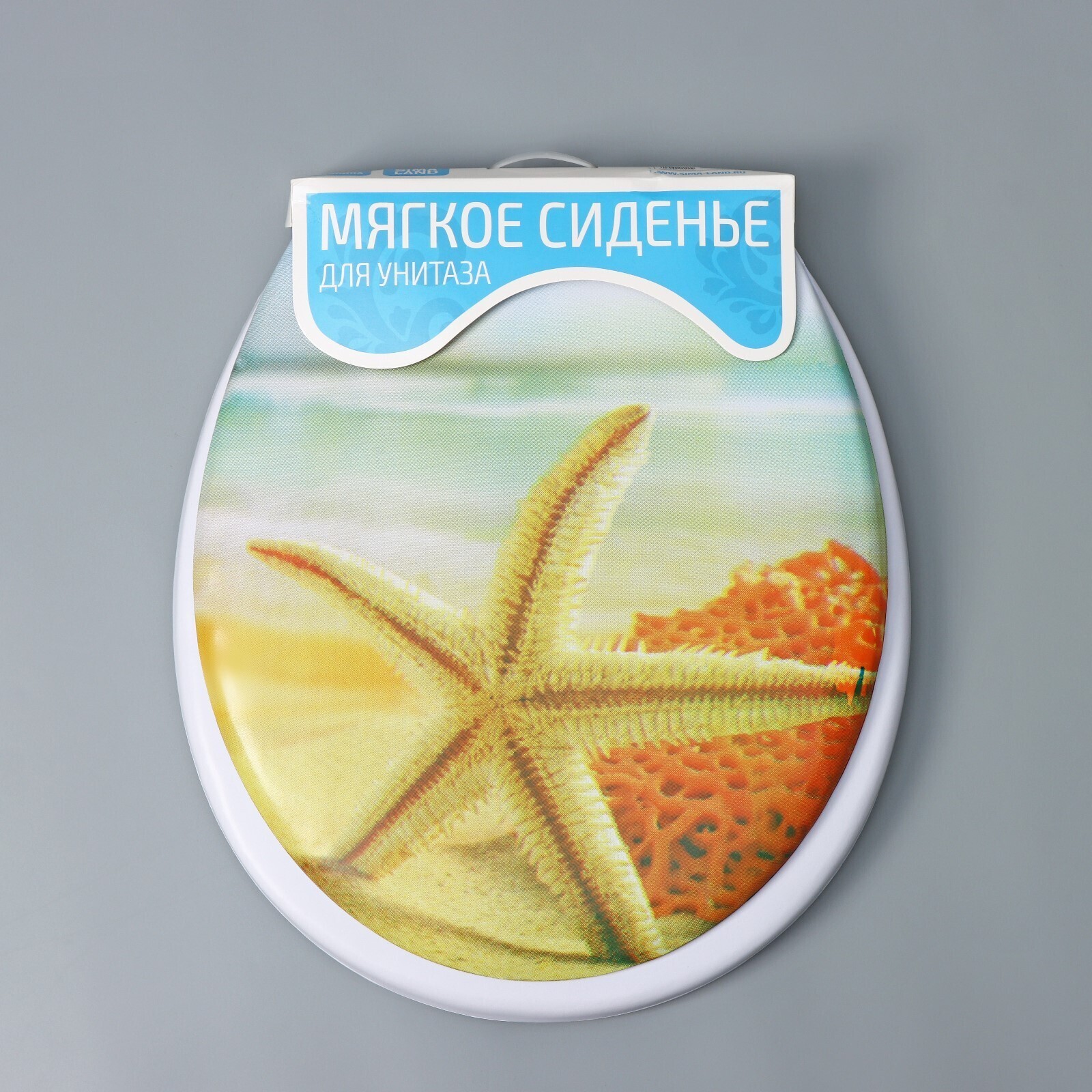 Сиденье для унитаза с крышкой «Пляж со звездой», 40×37 см, мягкое