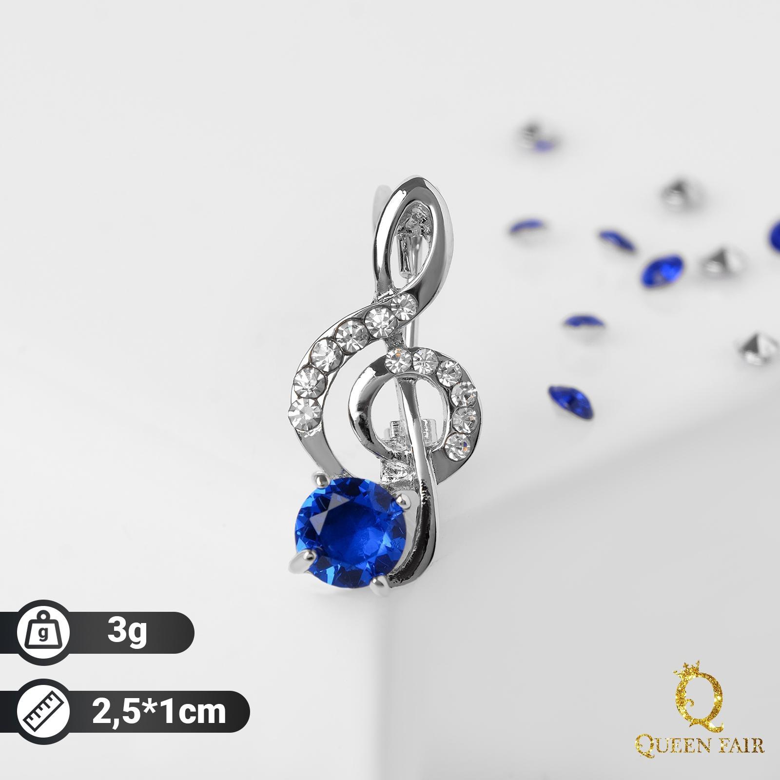 Брошь "Скрипичный ключ" мини, вдохновение, цвет бело-синий в серебре