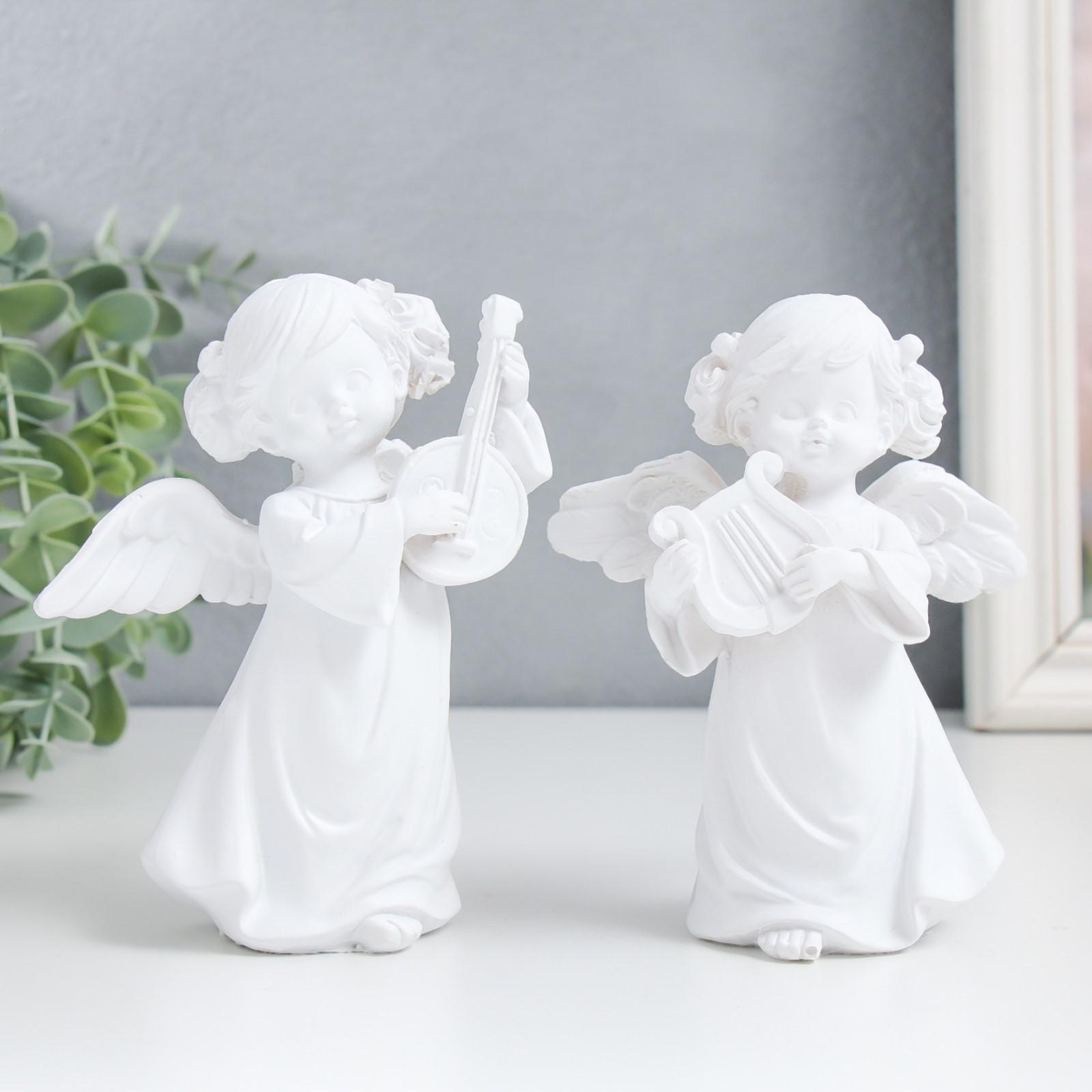 Сувенир полистоун "Ангел-девочка музицирует" белоснежный МИКС 10х5,5х12 см