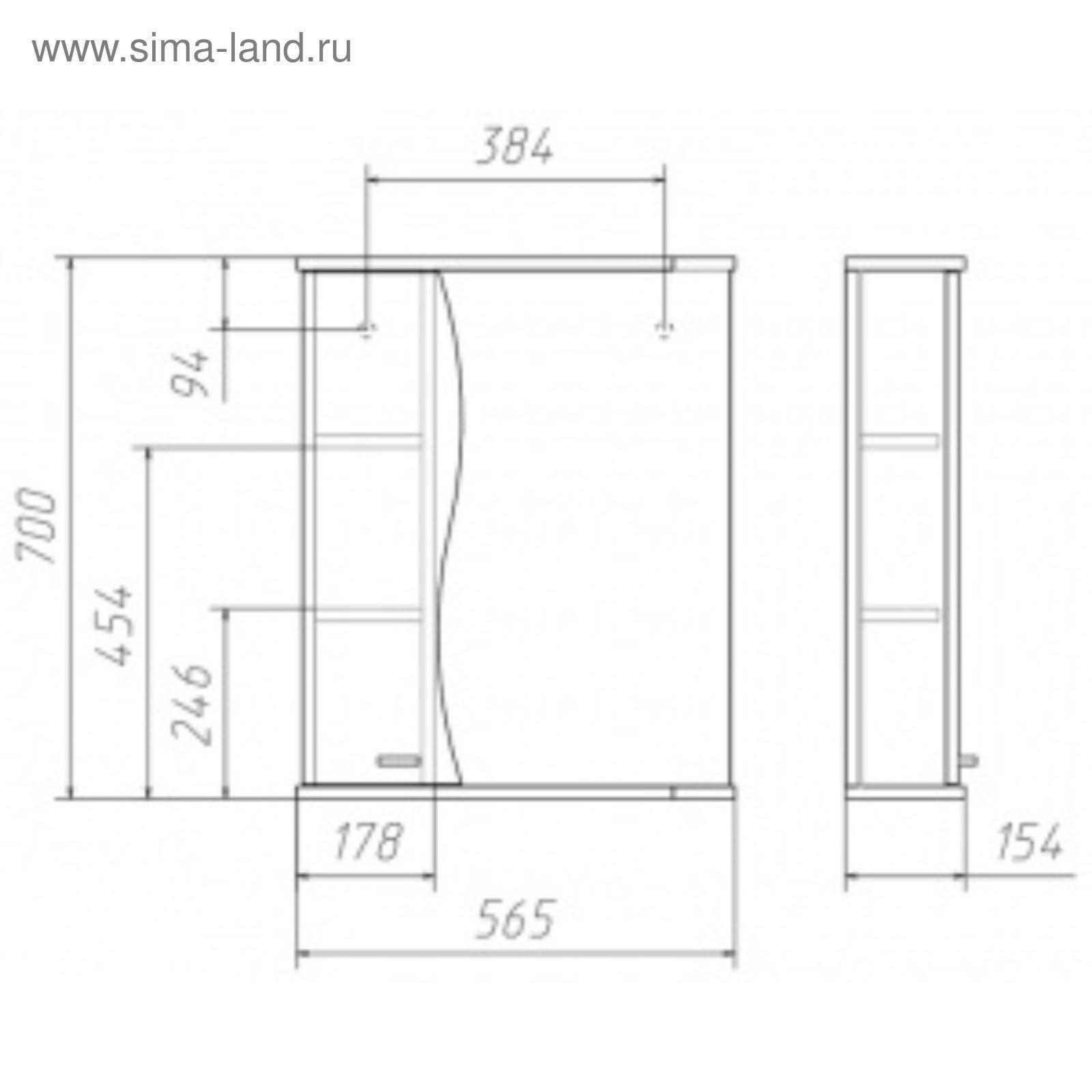 Шкаф-зеркало Волна 55 правый 15,7 см х 55 см х 70 см