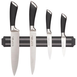 ● Состав набора: Нож поварской 20см, Нож разделочный 20см, Нож универсальный 12,5см, Нож для чистки овощей и фруктов 9см, настенный магнитный держатель