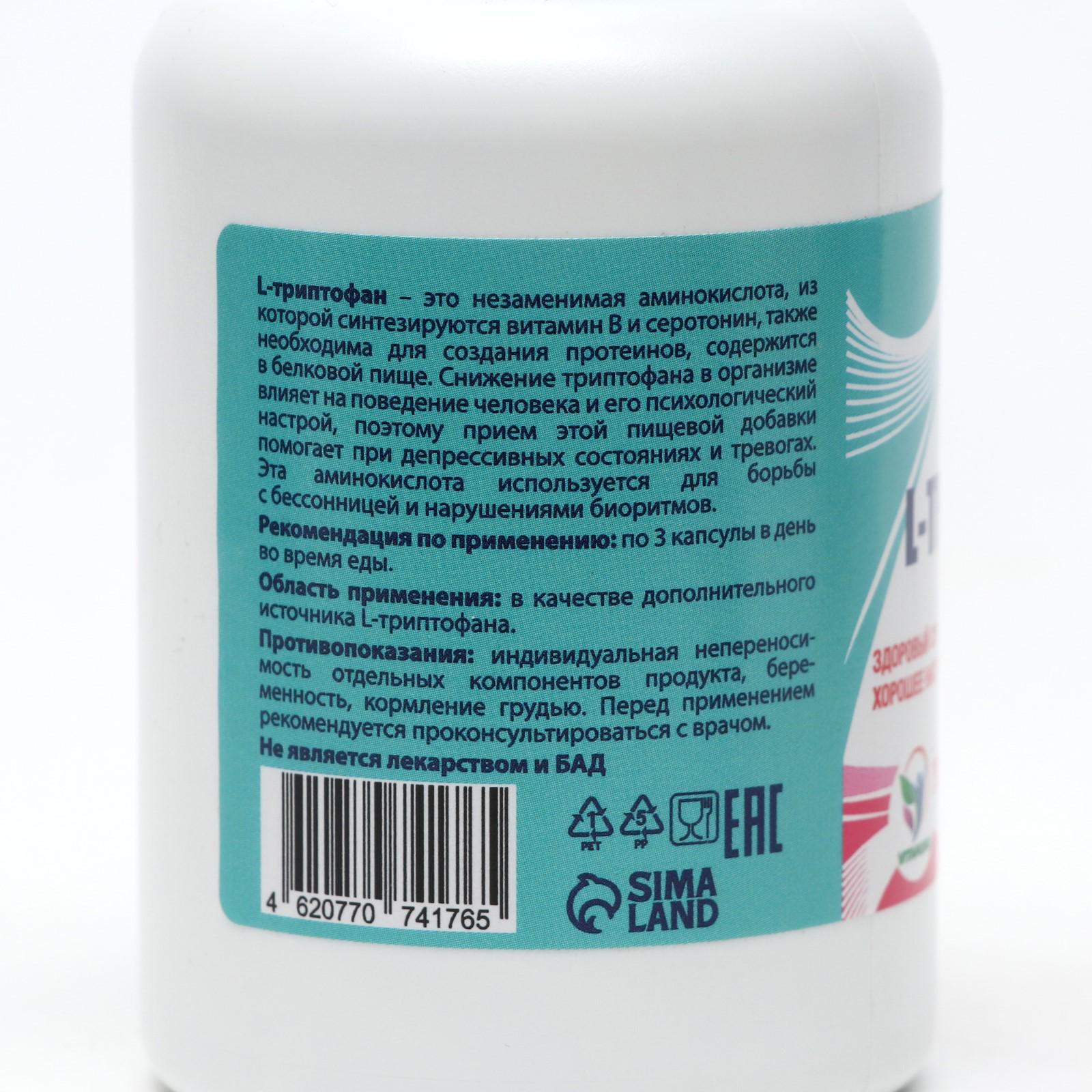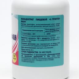 Состав: триптофан, антислеживающий агент микрокристаллическая целлюлоза, капсула (желатин, вода).