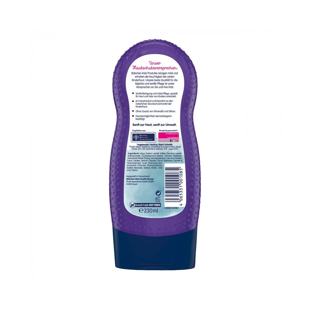 Компоненти, що містяться в шампуні-гелі для душу, сприятливо впливають на волосся, заспокоюють шкіру і інтенсивно її зволожують. Нейтральний рівень рН безпечний для контакту зі шкірою. Зворушливий захист і догляд за малюками - саме та область, в якій ви зможете довіритися високій якості продукціїBubchen.
