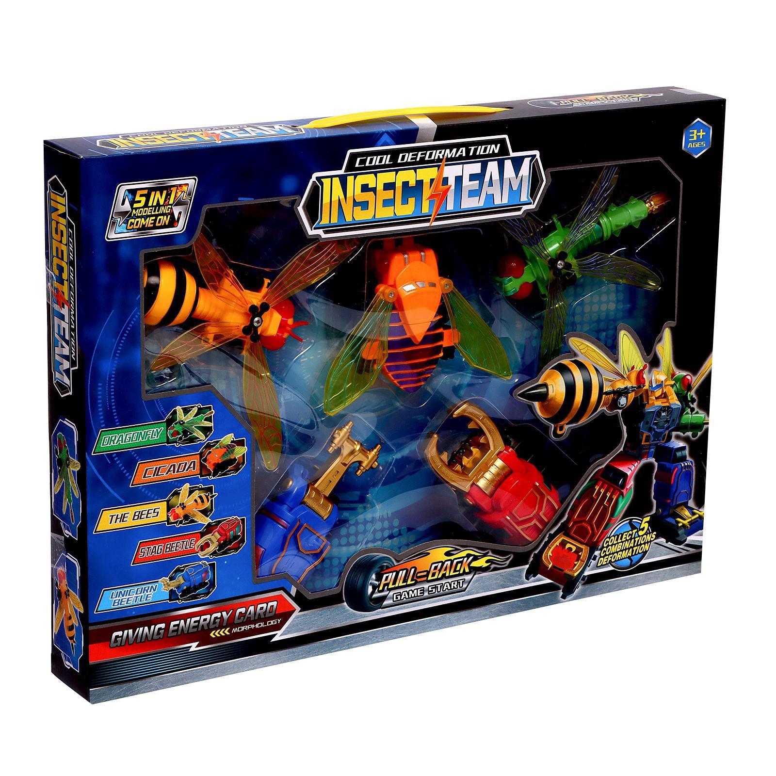 Набор инерционных роботов "Команда насекомых", трансформируются, собираются в одного робота