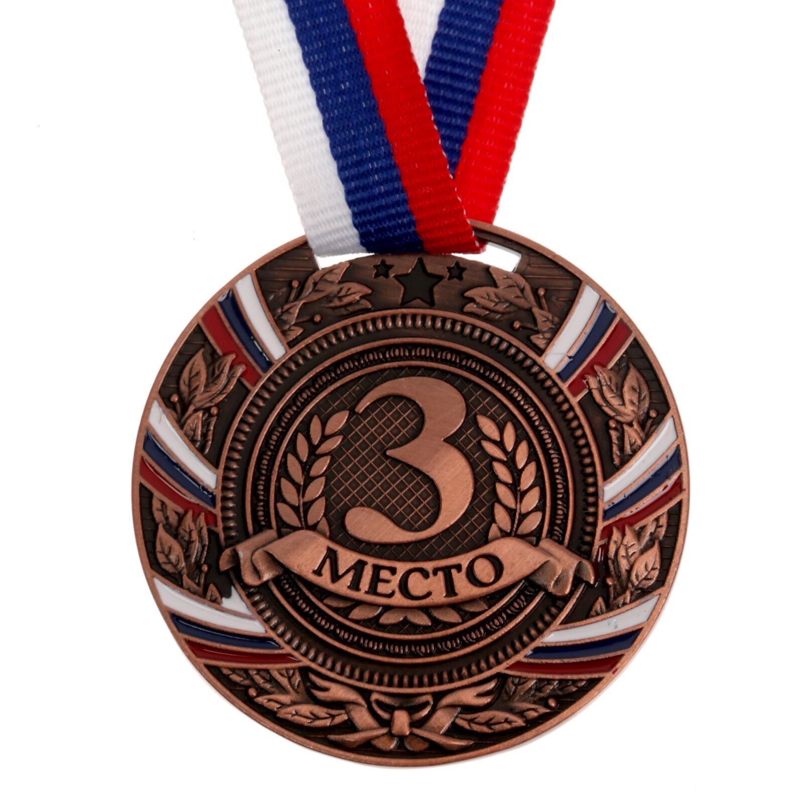 Медаль призовая, 3 место, бронза, триколор, d=5 см
