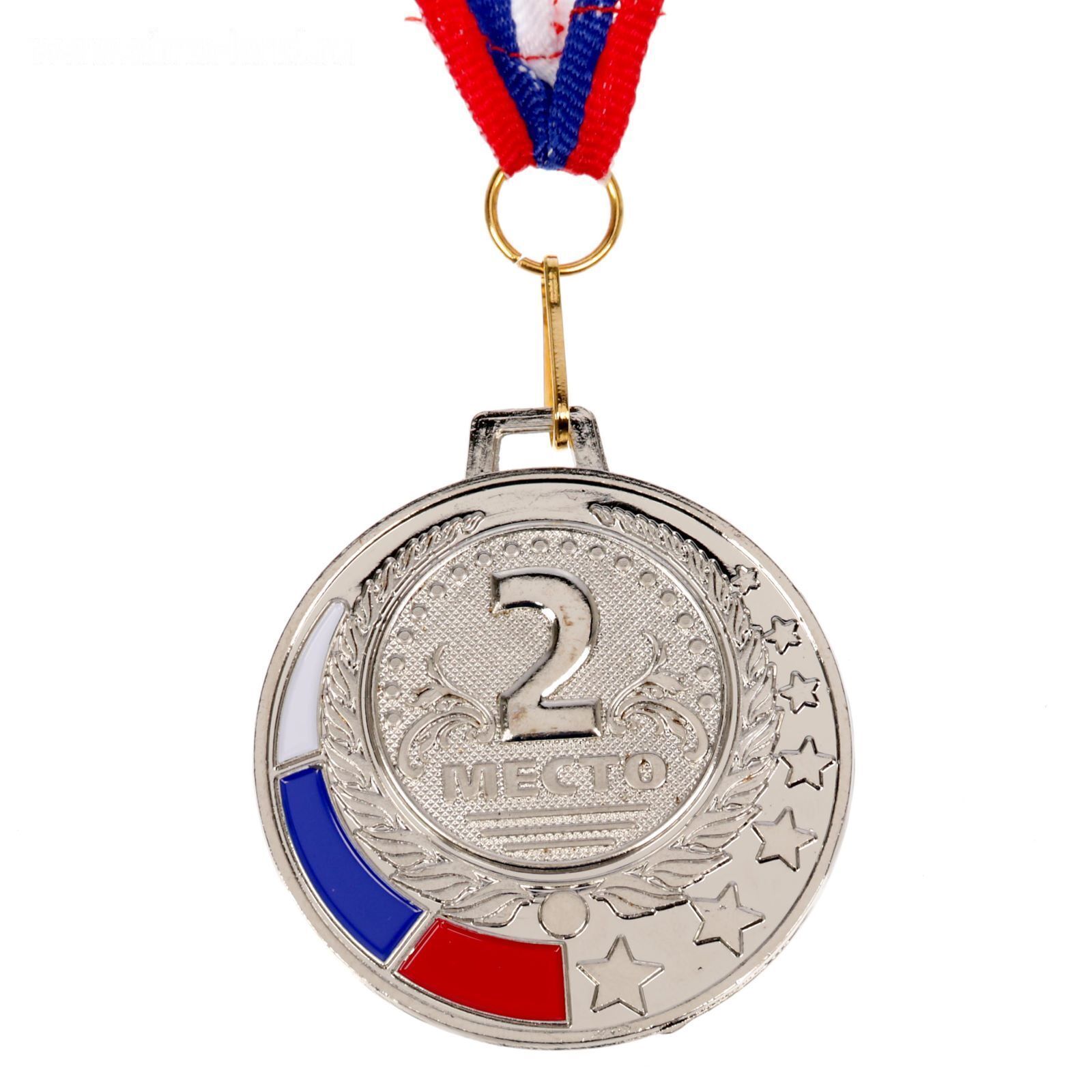 Медаль призовая, 2 место, серебро, триколор, d=5 см