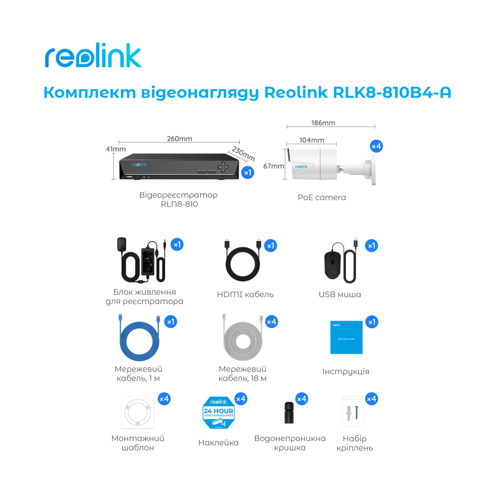 Комплект відеоспостереження Reolink RLK8-810B4-A