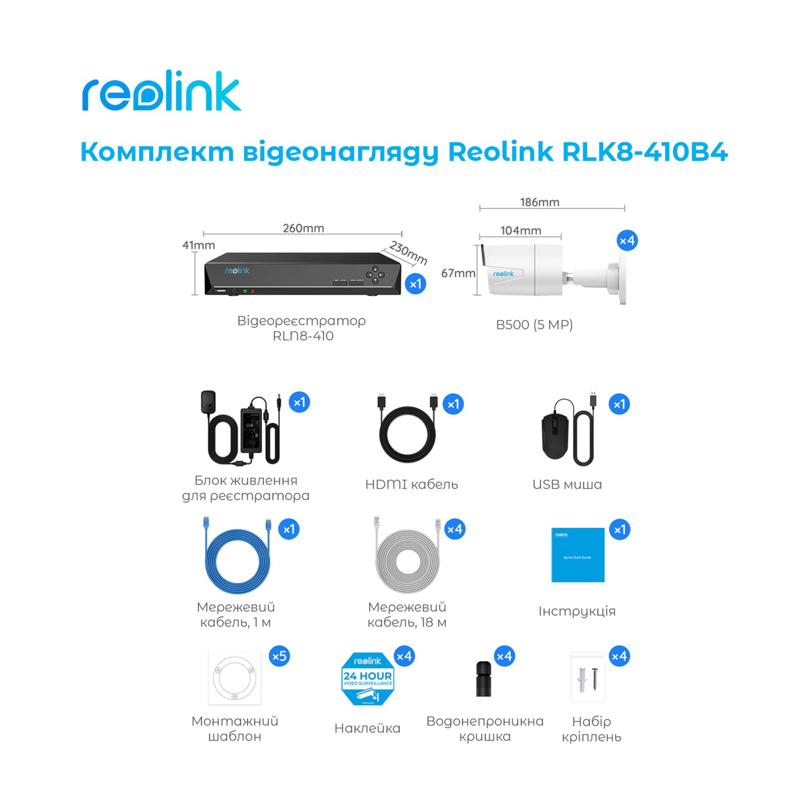 Комплект відеоспостереження Reolink RLK8-410B4-5MP