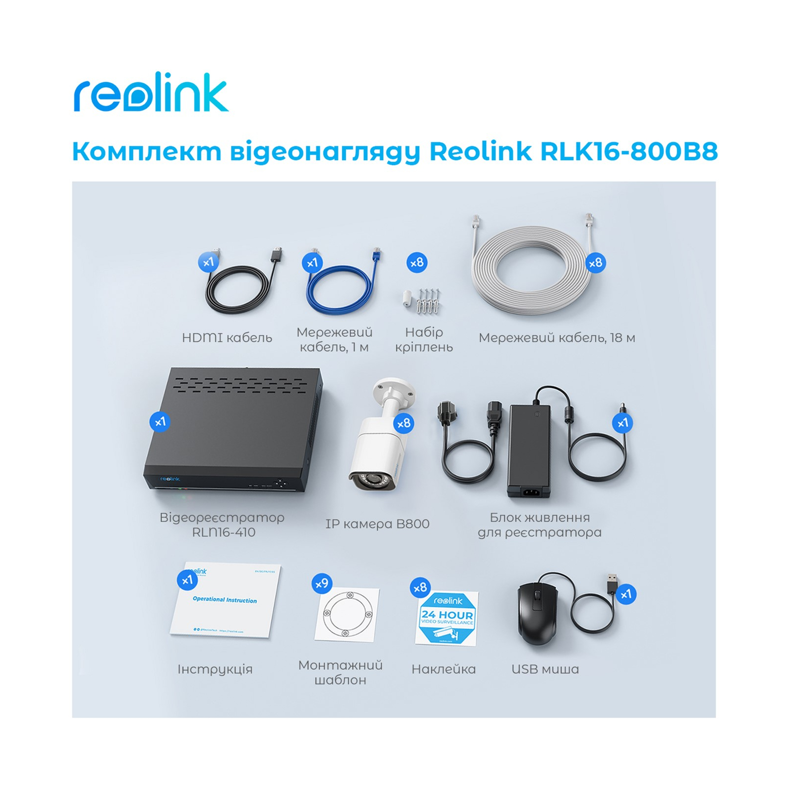 Нова технологія зменшує кількість помилкових тривог. Комплект відеоспостереження Reolink RLK16-800B8 з 8 циліндричних РоЕ камер, реєстратора, розрахованого на 16 камер і жорсткого диска. Всі камери обладнані восьми мегапіксельними об'єктивами, аналітикою з розпізнавання людини та автомобіля у кадрі. Камери захищені від пилу та вологи за стандартом IP66 та готові до встановлення на вулиці. Ви отримаєте миттєві повідомлення, коли буде потрібна ваша увага.