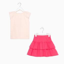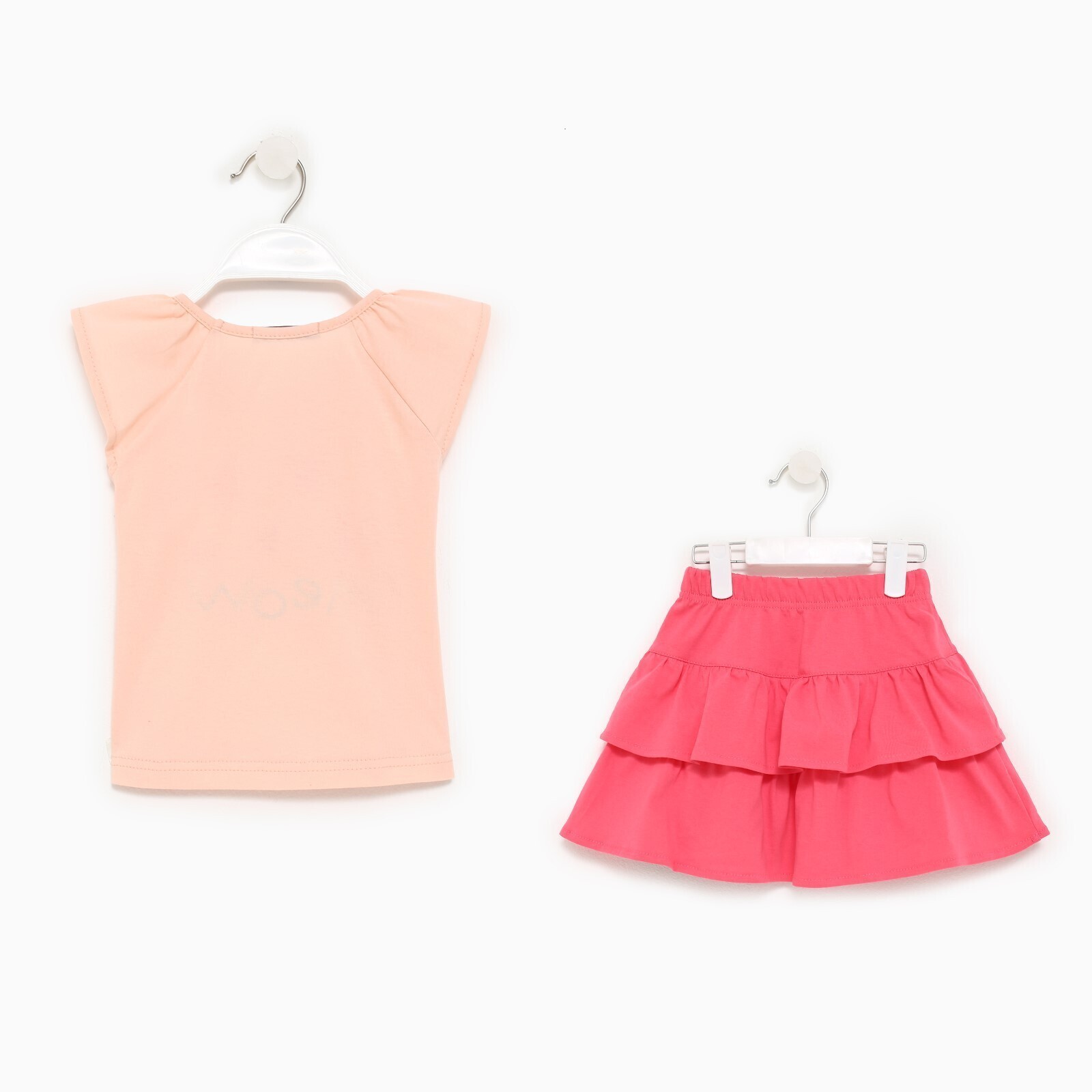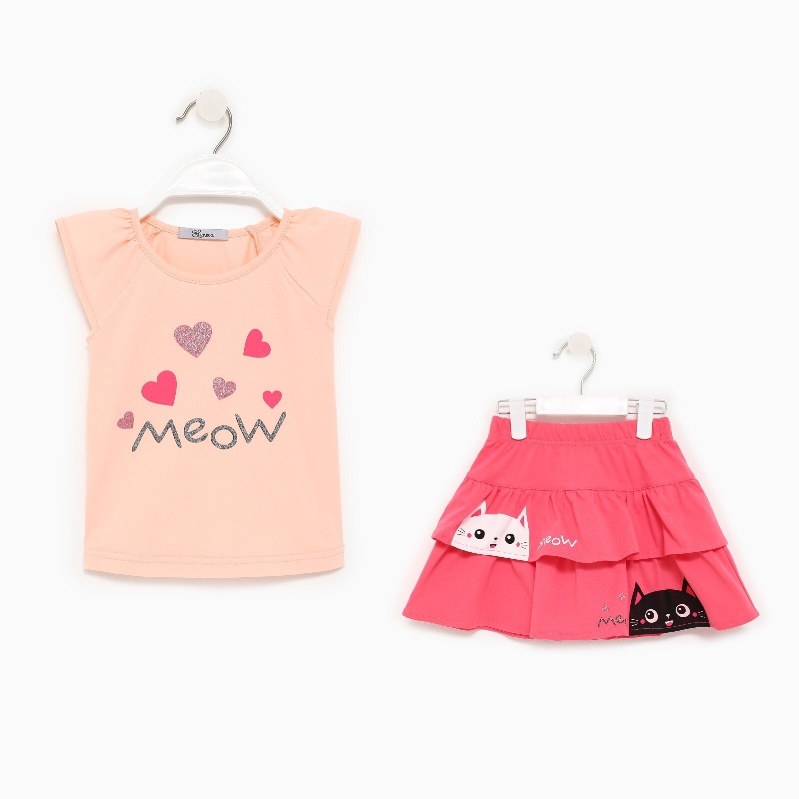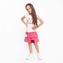 Костюм (футболка, юбка) для девочки, цвет персиковый/коралловый, рост 104 см