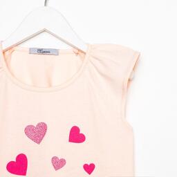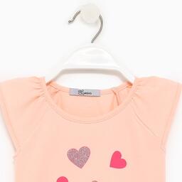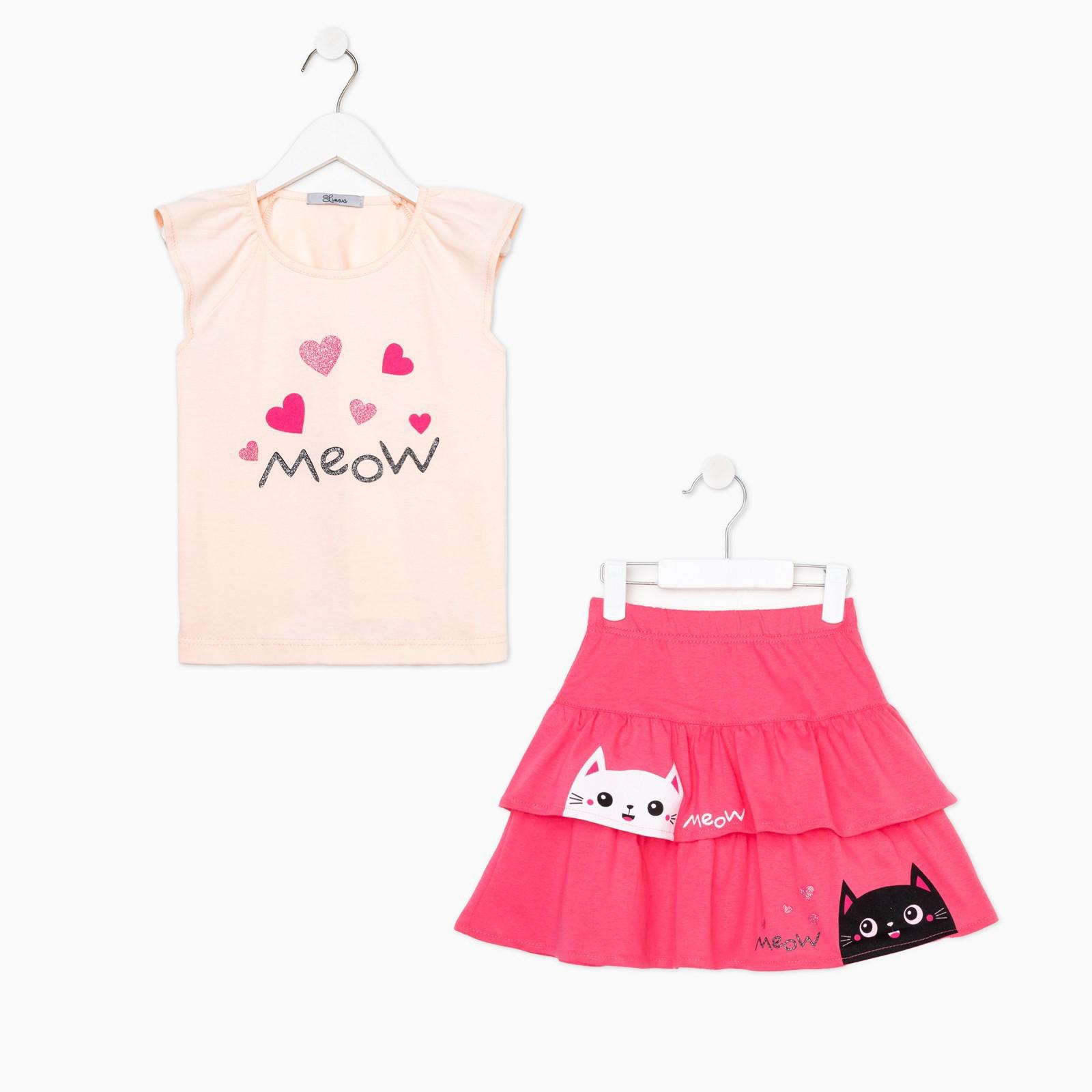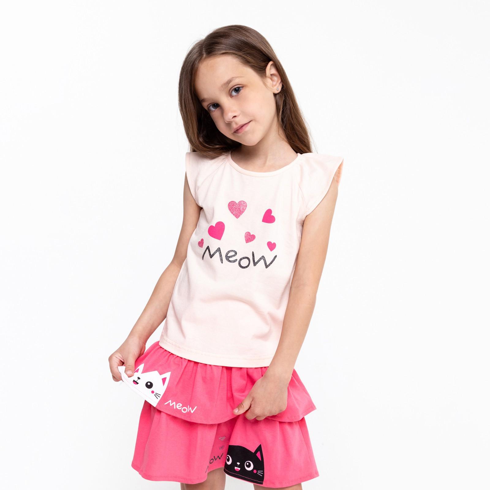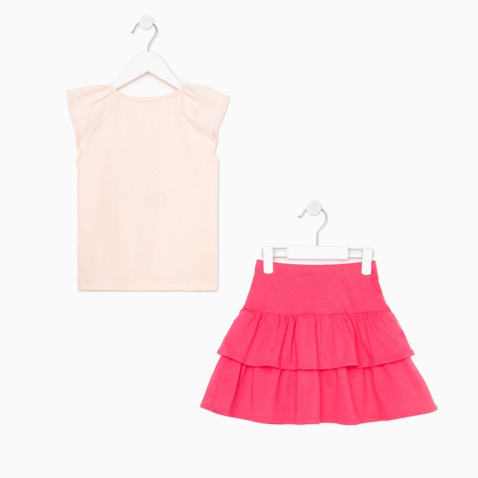 Костюм (футболка, юбка) для девочки, цвет персиковый/коралловый, рост 104 см