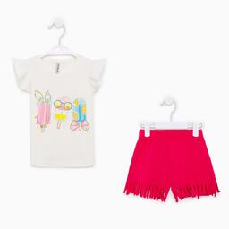 Комплект (футболка/шорты) для девочки, цвет белый/коралл, рост 98