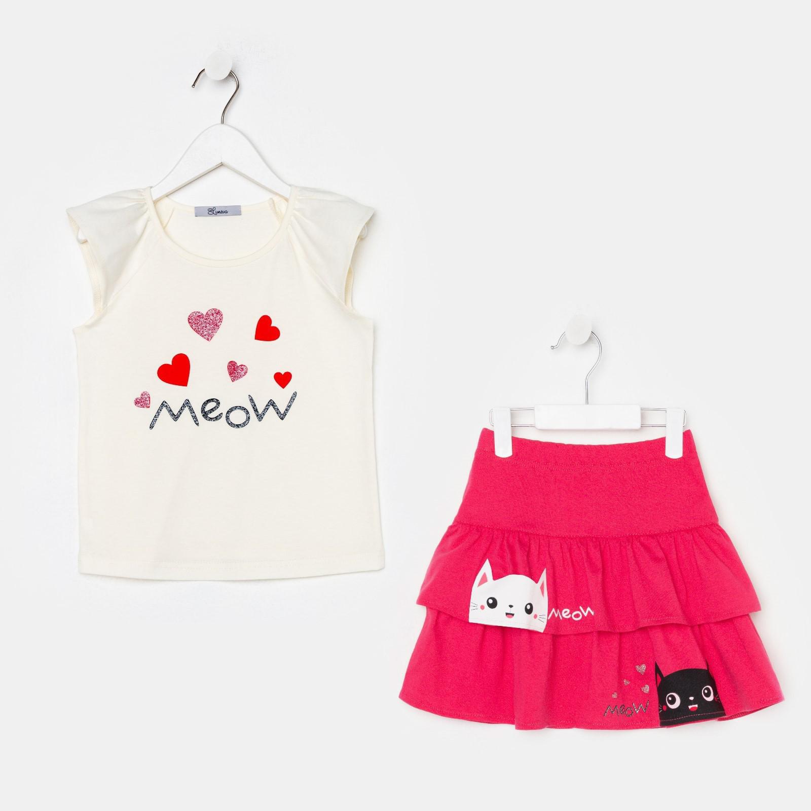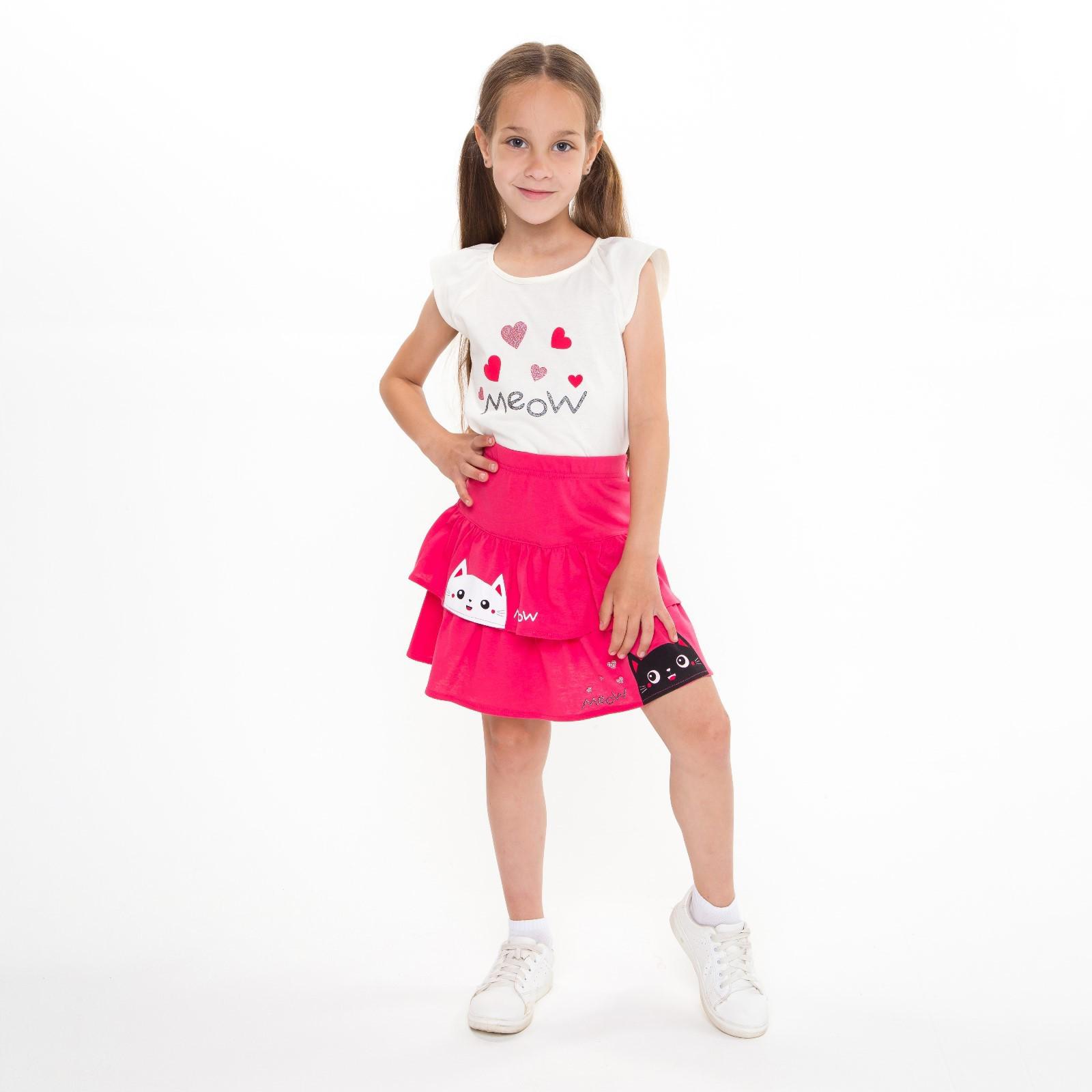 Костюм для девочки, цвет светло-бежевый/малиновый, рост 104 см