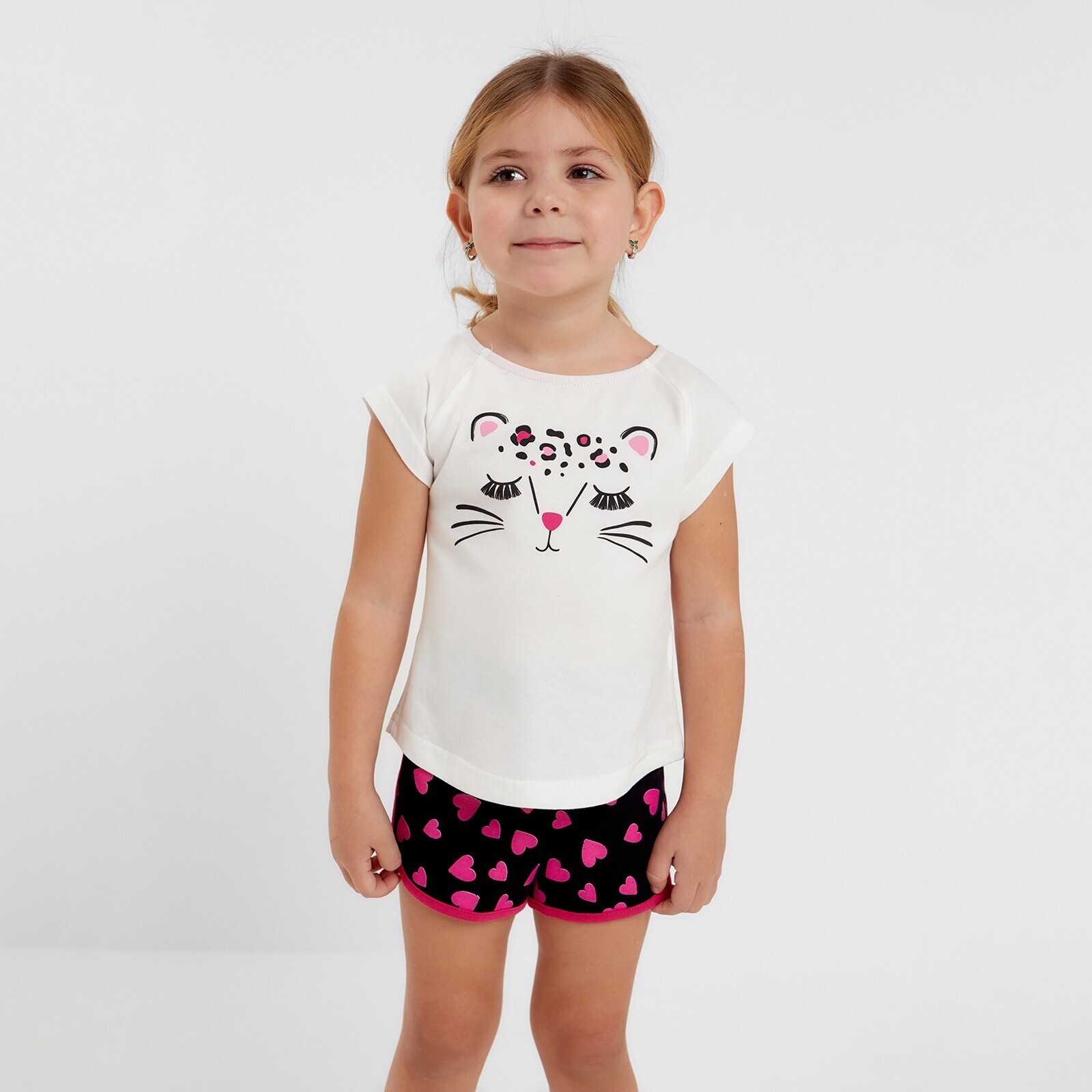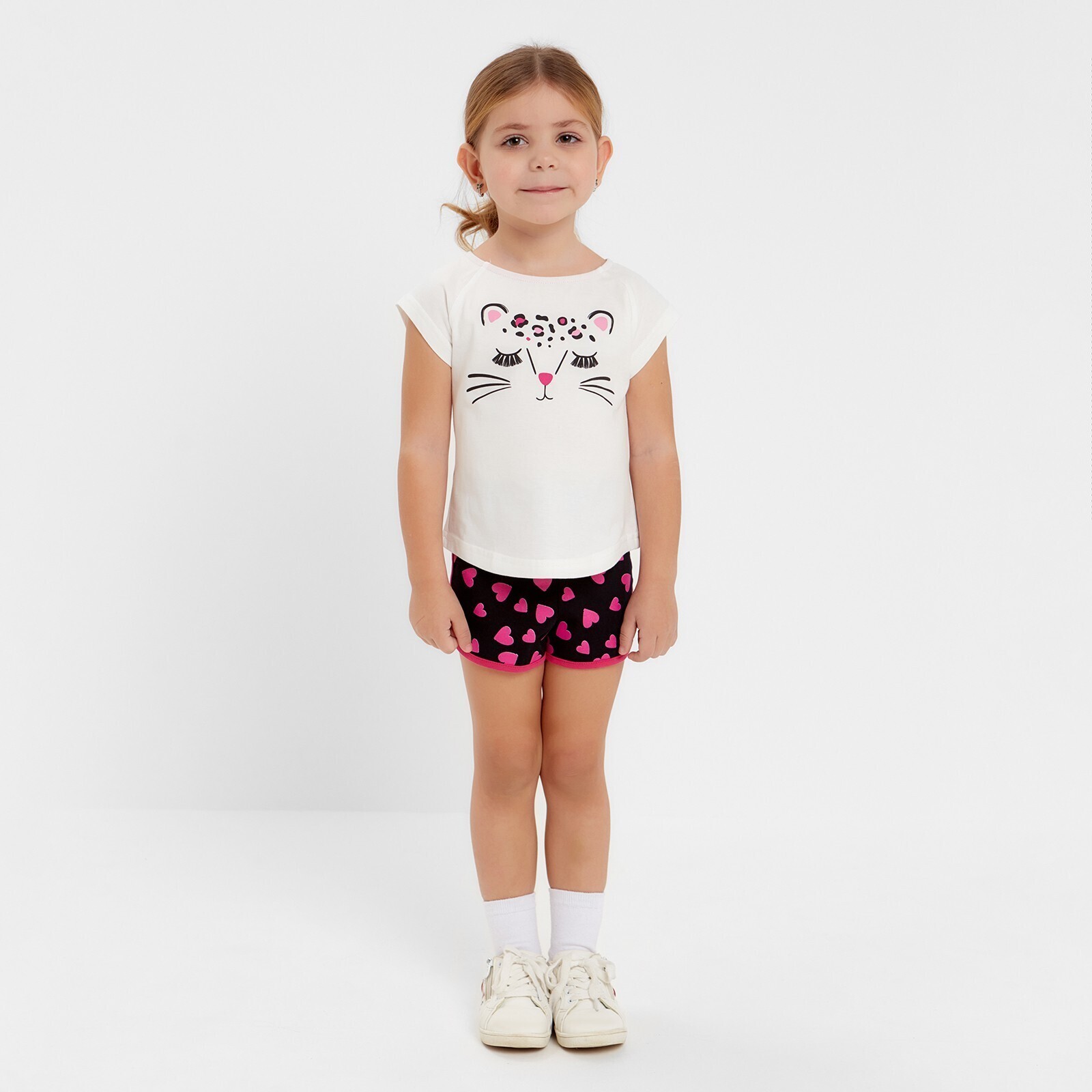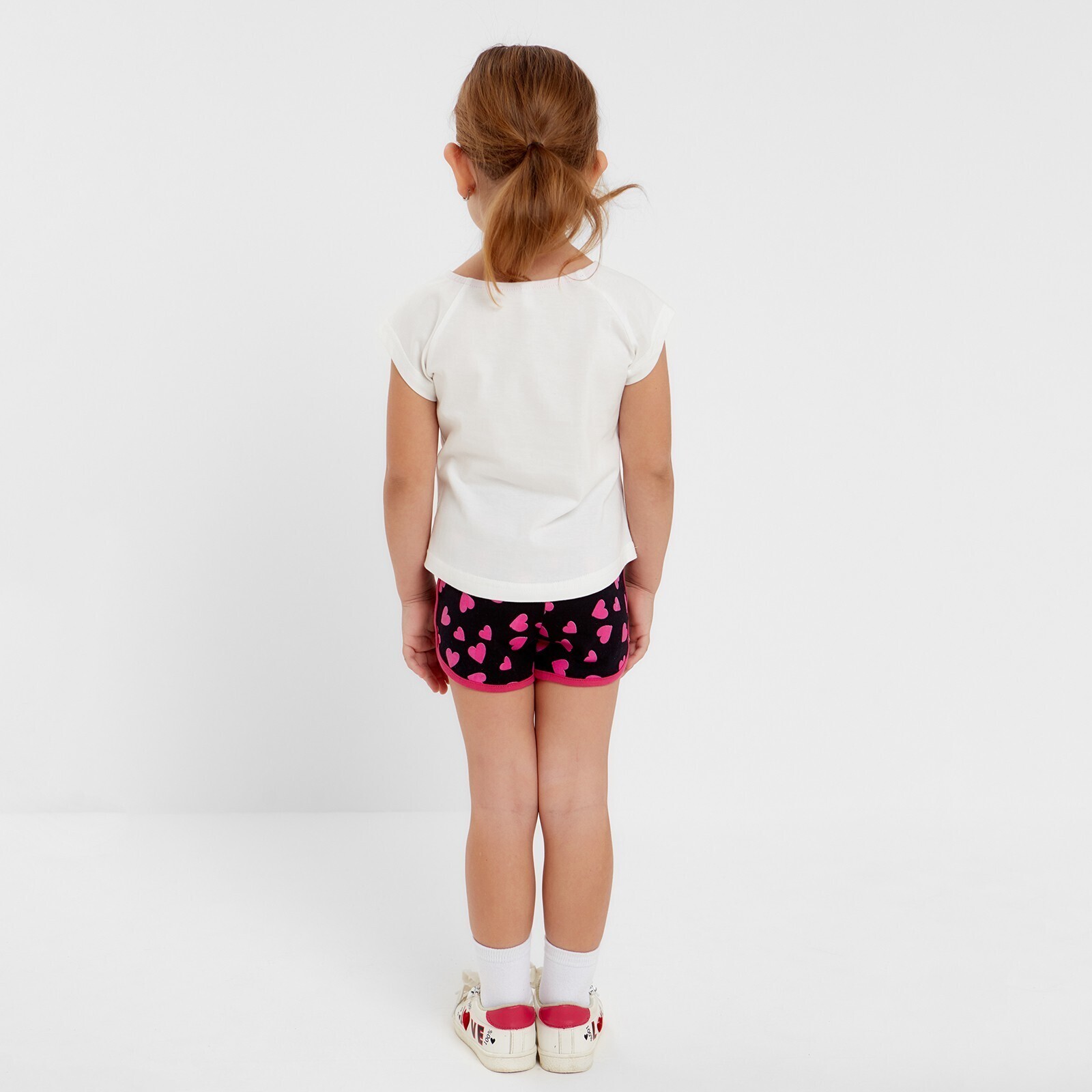Комплект (шорты и футболка) для девочки, цвет белый/темно-синий, рост 98