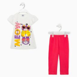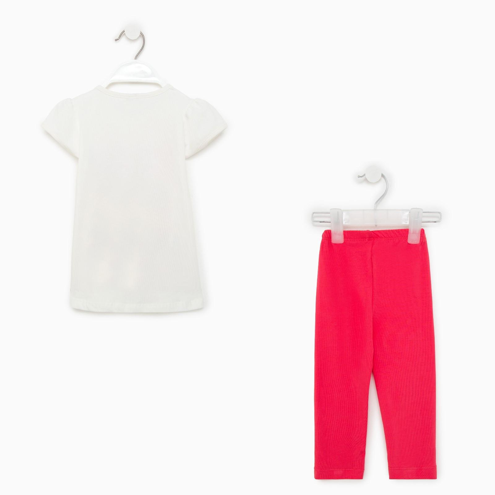 Комплект (футболка/лосины) для девочки, цвет белый/коралл, рост 98