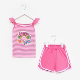 Комплект для девочки (майка/шорты), цвет розовый/полоска, рост 98 см