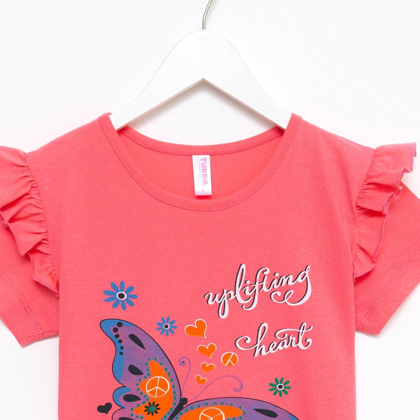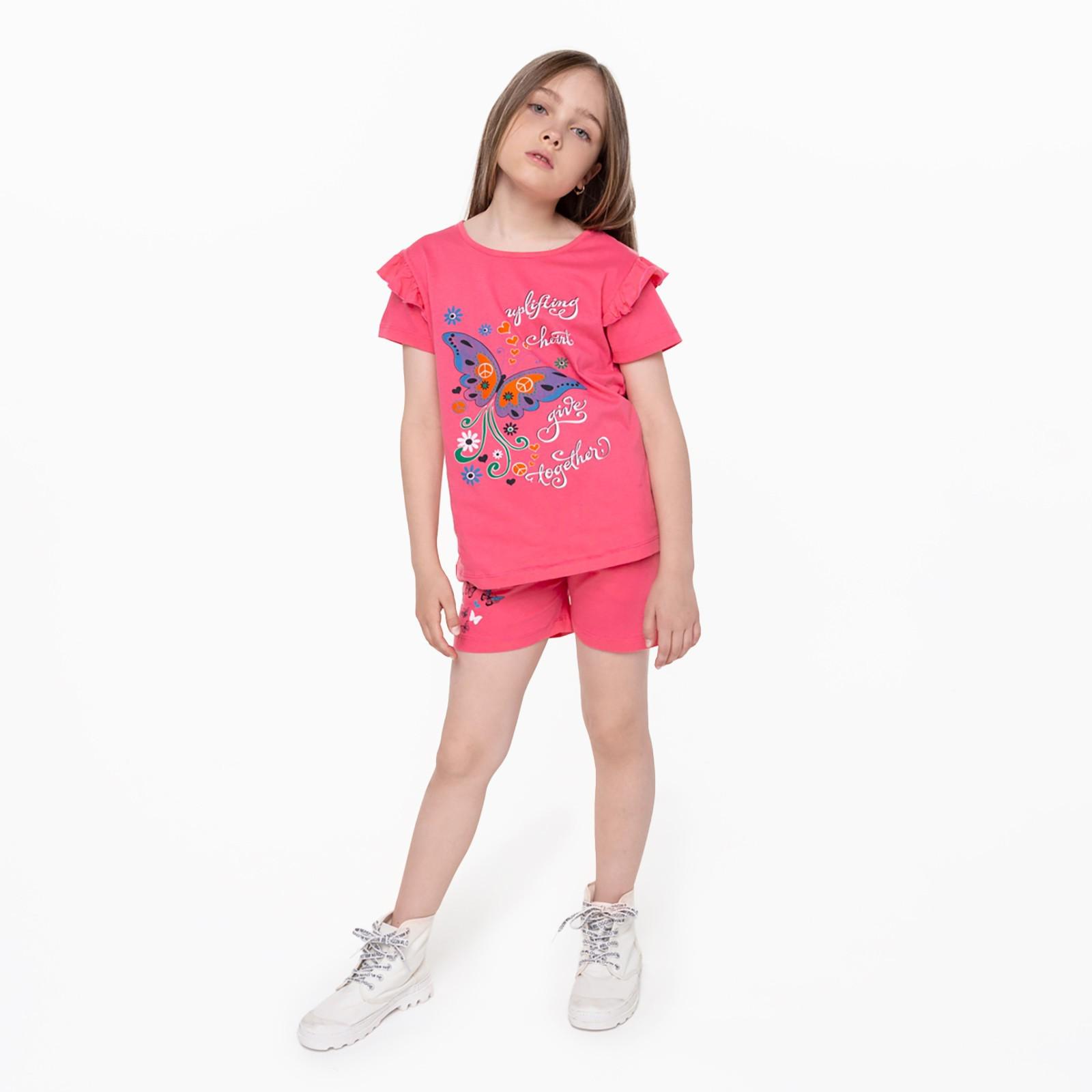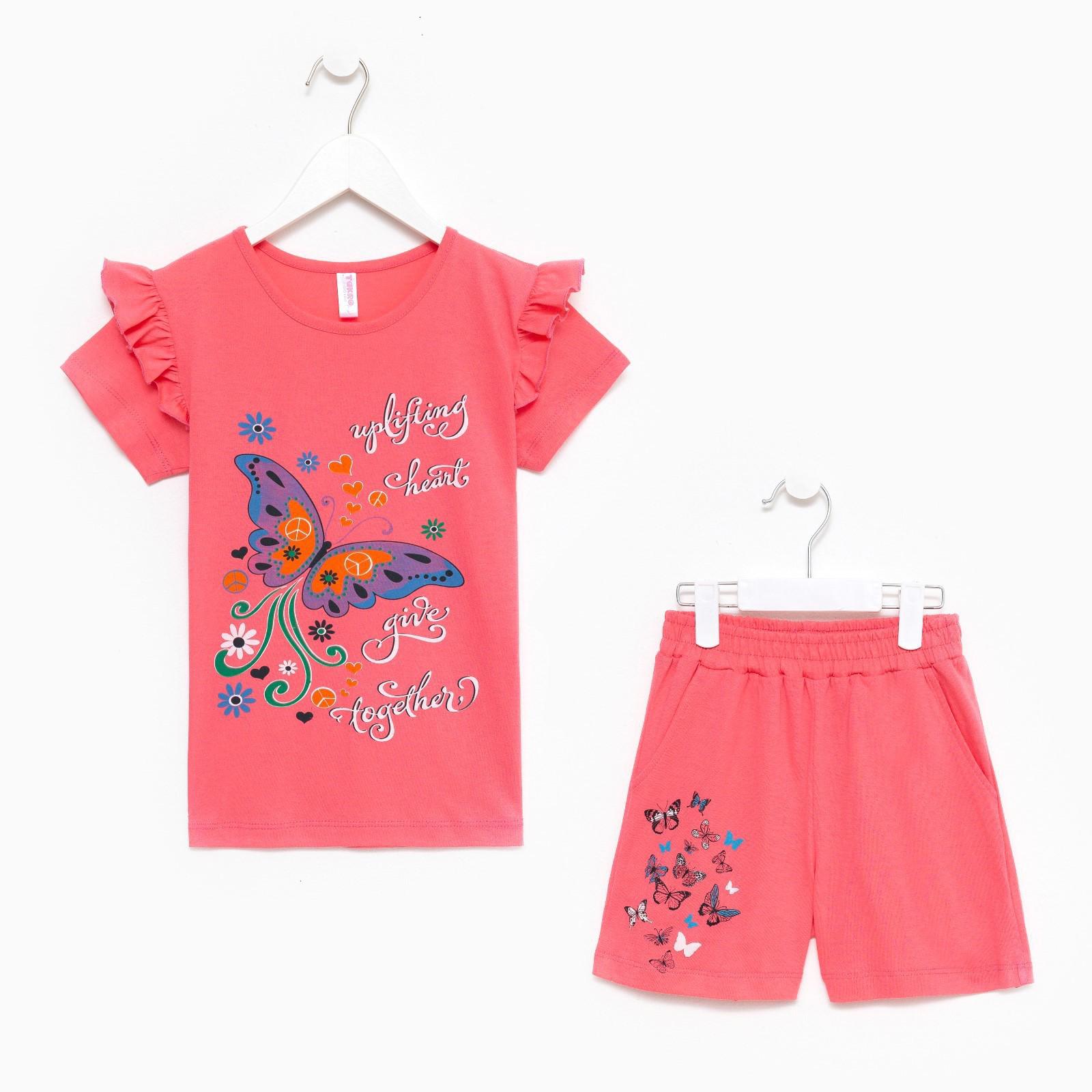 Комплект для девочки (футболка/шорты), цвет коралловый, рост 116 см