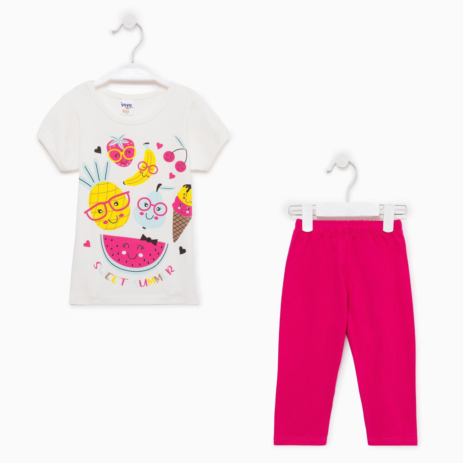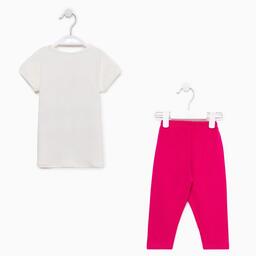 Комплект (футболка/лосины) для девочки, цвет белый/фуксия, рост 98