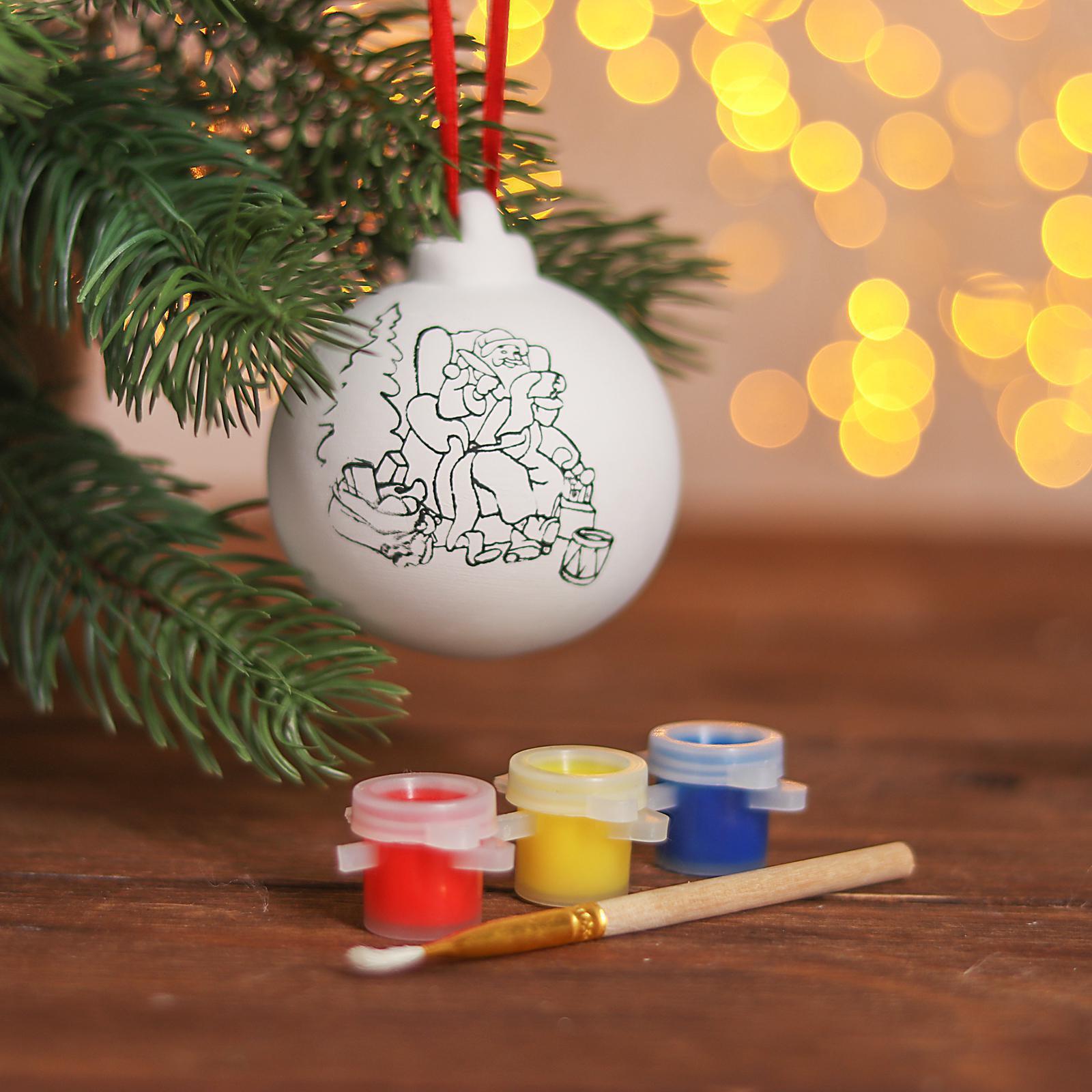 Новогодний шар под раскраску «Дед Мороз» с подвесом, краска 3 цв. по 2 мл, кисть