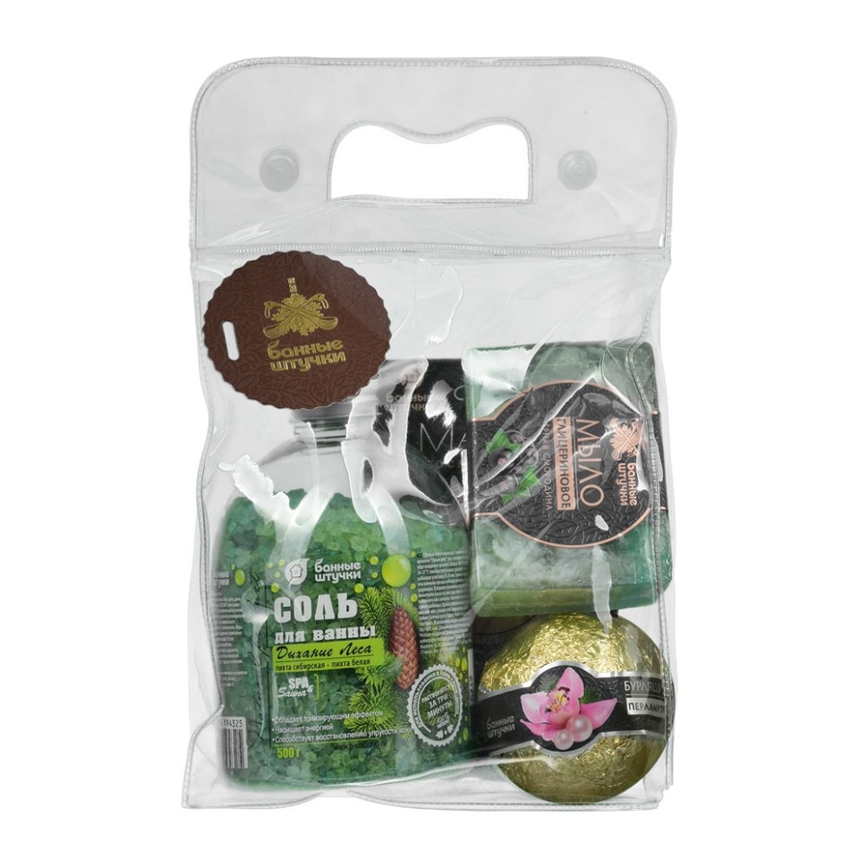 Подарочный набор 4 предмета (соль, мыло, бурлящий шар, глиняная маска) "Банные штучки" / 6