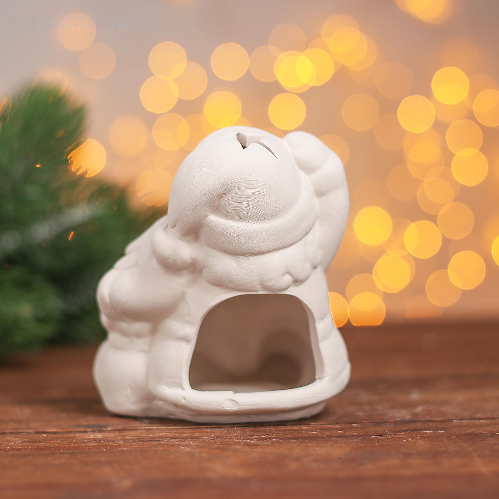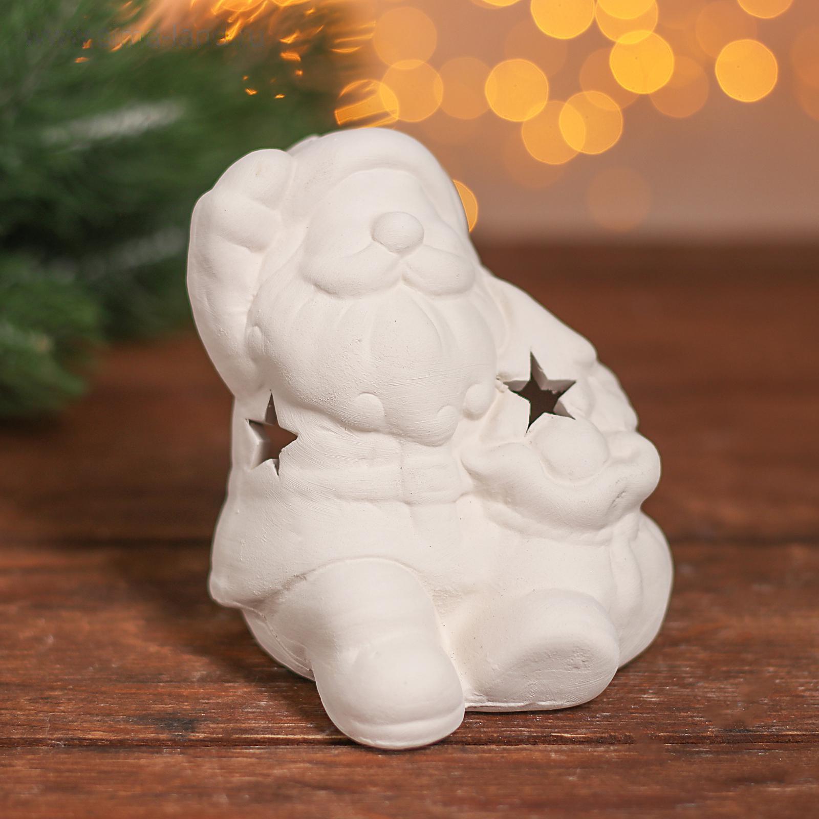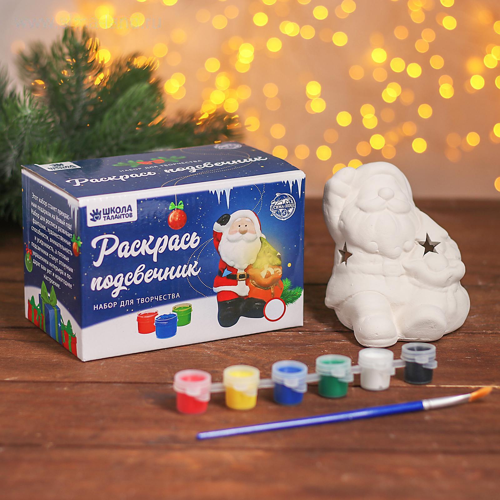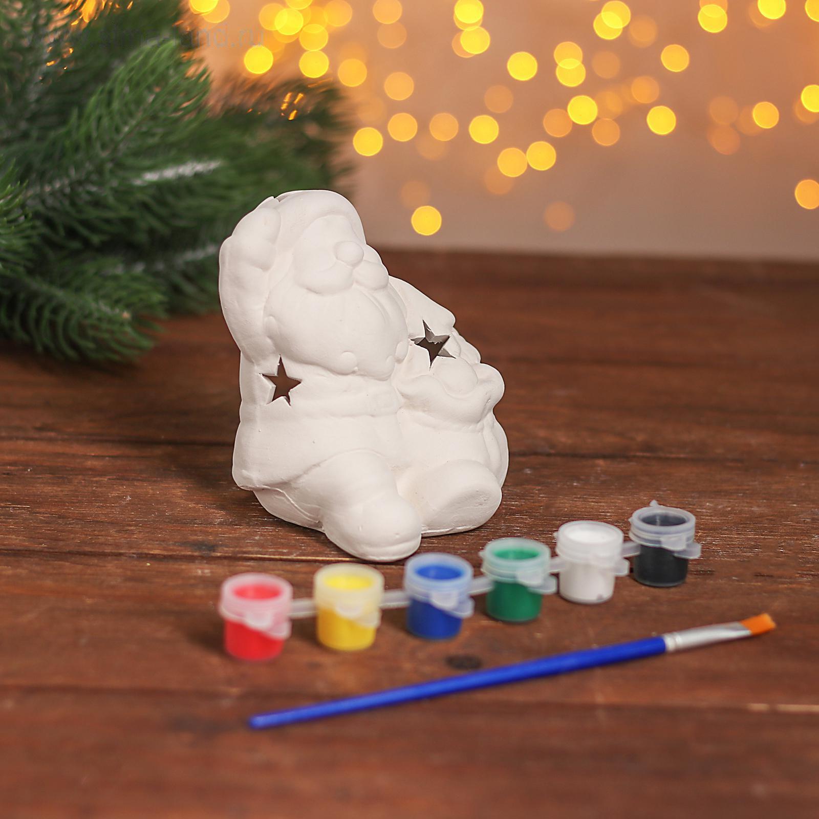 Набор для творчества подсвечник под раскраску «Дед Мороз с мешком» краски 6 шт. по 3 мл, кисть