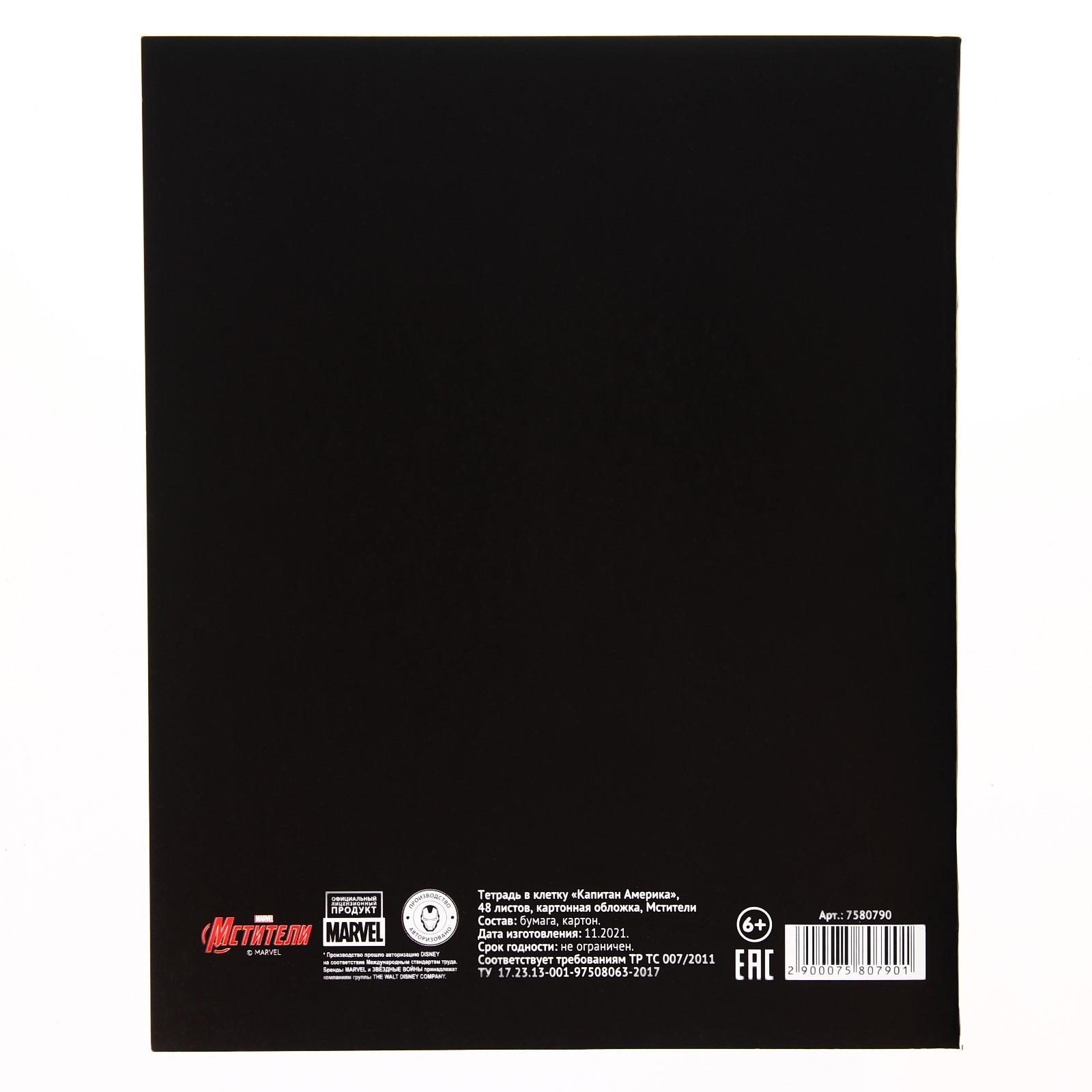 Тетрадь 48 листов в клетку, картонная обложка "Капитан Америка", Мстители