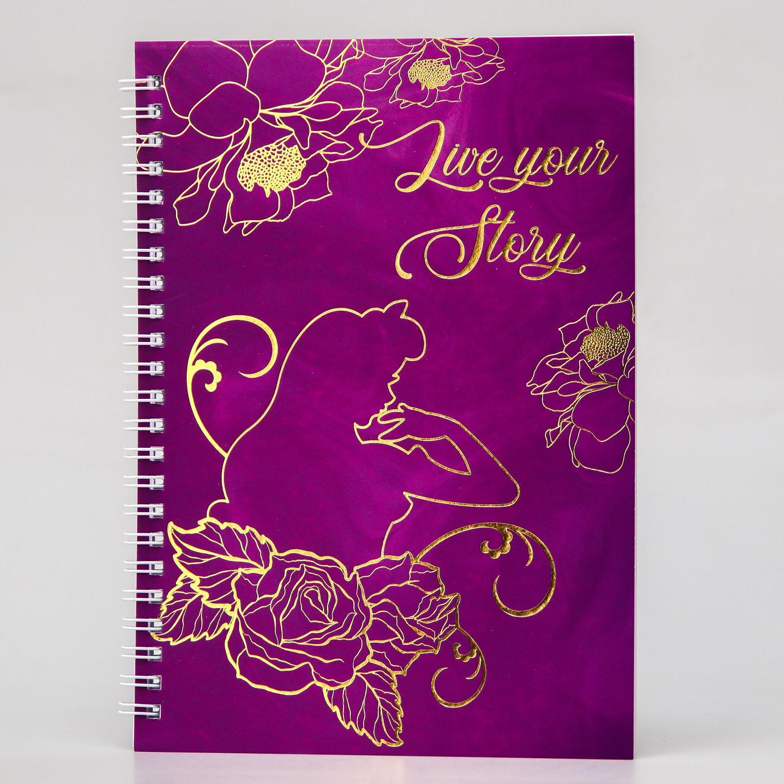 Тетрадь А5 на гребне, в твердой обложке с тиснением, 60 листов, "Love your story", Принцессы 5392
