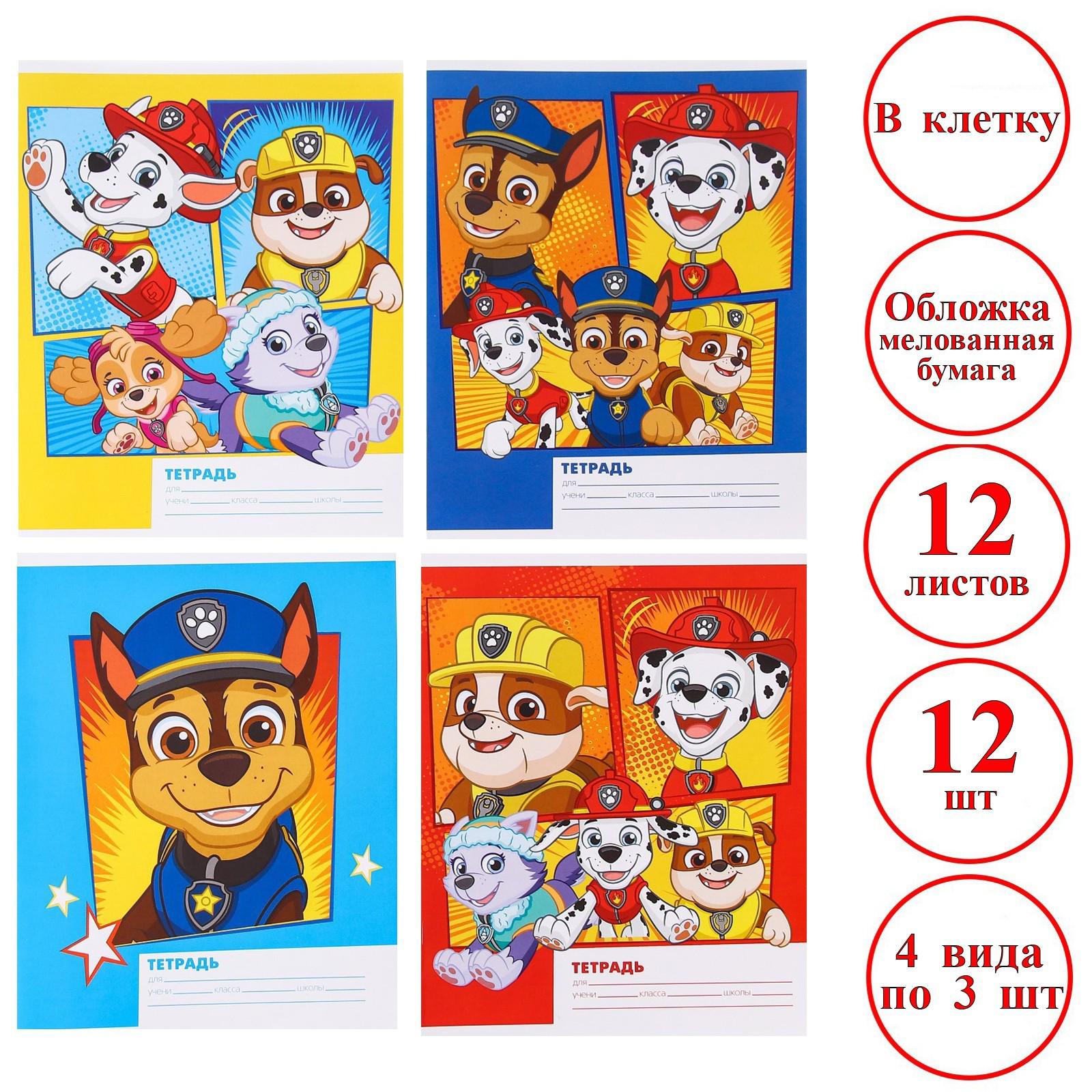 Комплект тетрадей из 12 шт "Щенячий патруль", 12 листов, в клетку, обложка бумага мелован.