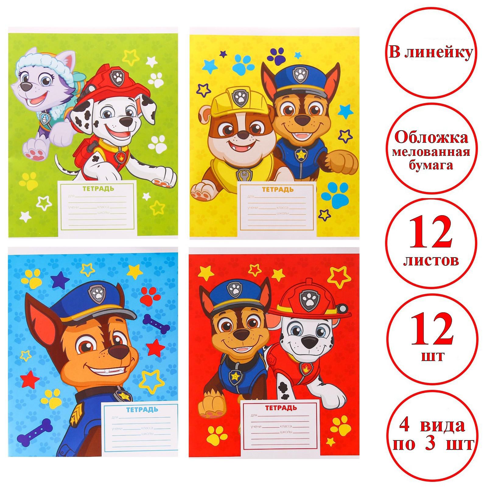 Комплект тетрадей из 12 шт "Щенячий патруль", 12 листов, в линейку, обложка бумага мелован.